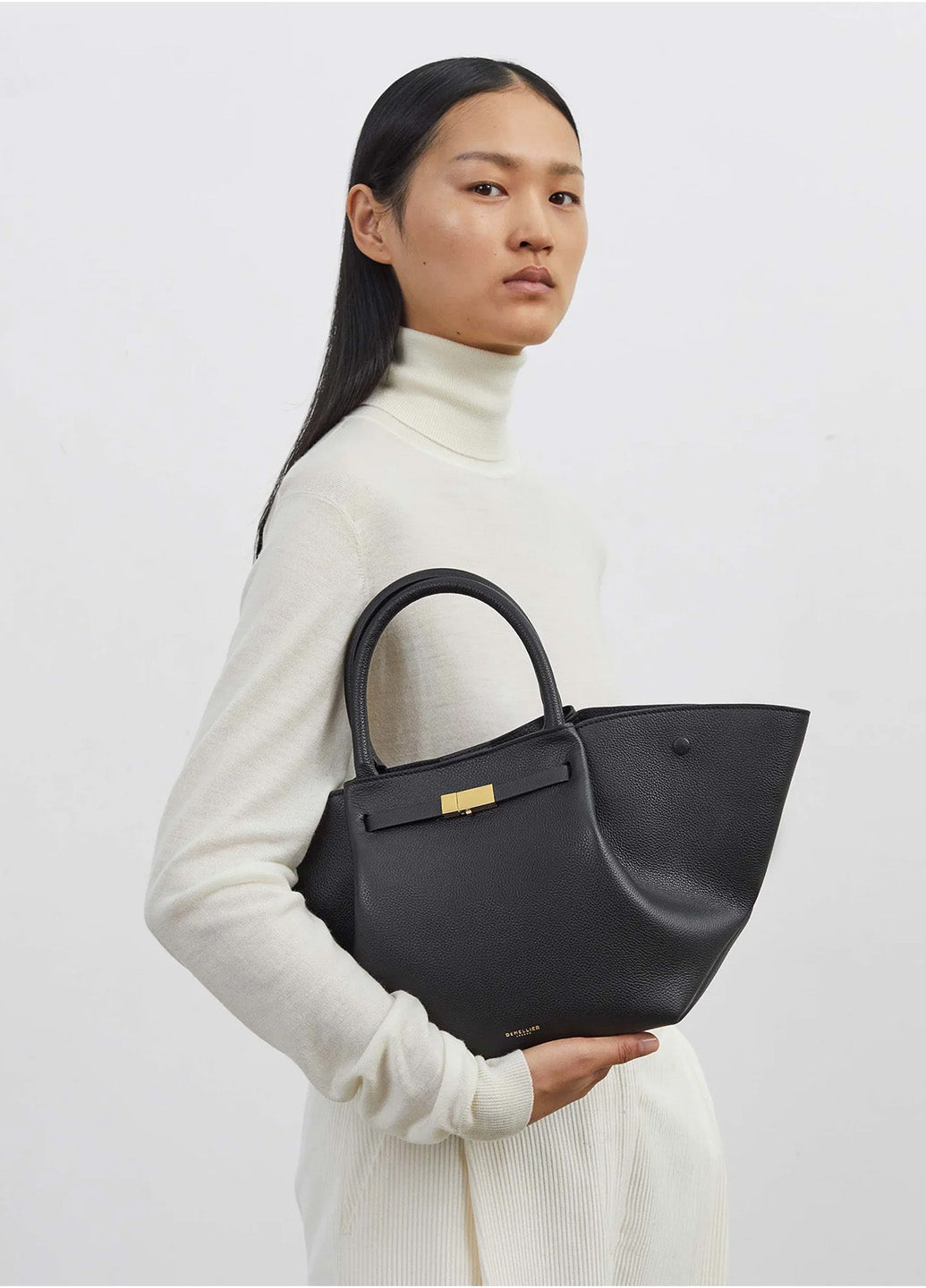 Midi New York була створена під впливом нашої любові до цього динамічного міста, його енергії, архітектури та людей. Сумка поєднує сучасний і водночас позачасовий силует, а її розкішна обробка робить її ідеальною для щоденного використання. Внутрішнє відділення надійно закривається магнітною застібкою. Зручні трубчасті ручки можуть носитися на згині ліктя або в руці. Основа сумки доповнена трикутними складками з обох боків та укріплена металевими ніжками. Це ідеальна сумка для зберігання всіх необхідних речей.