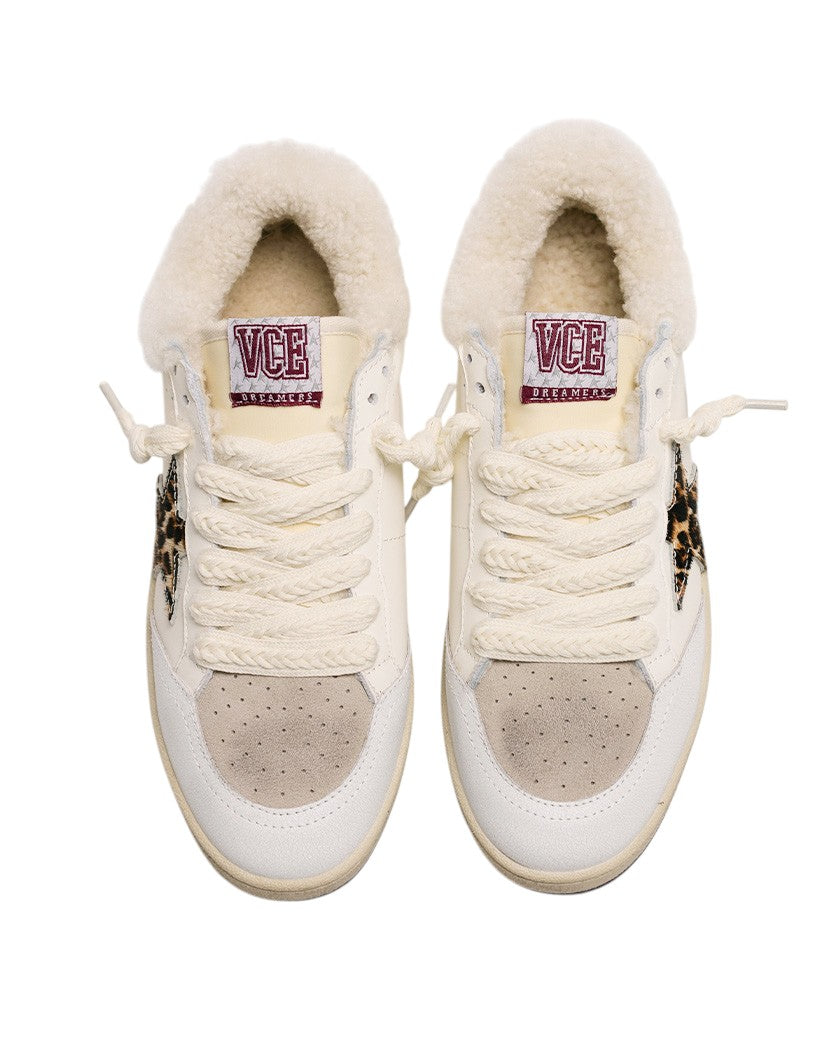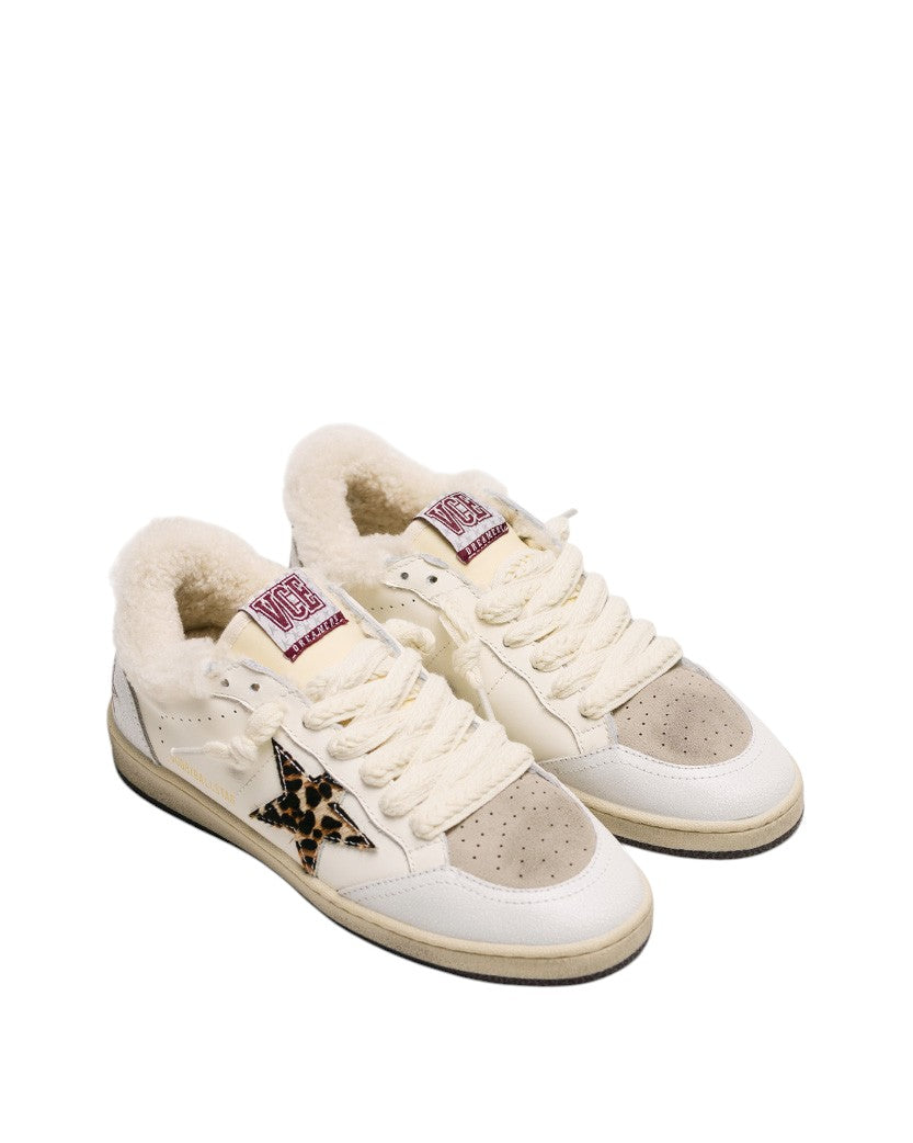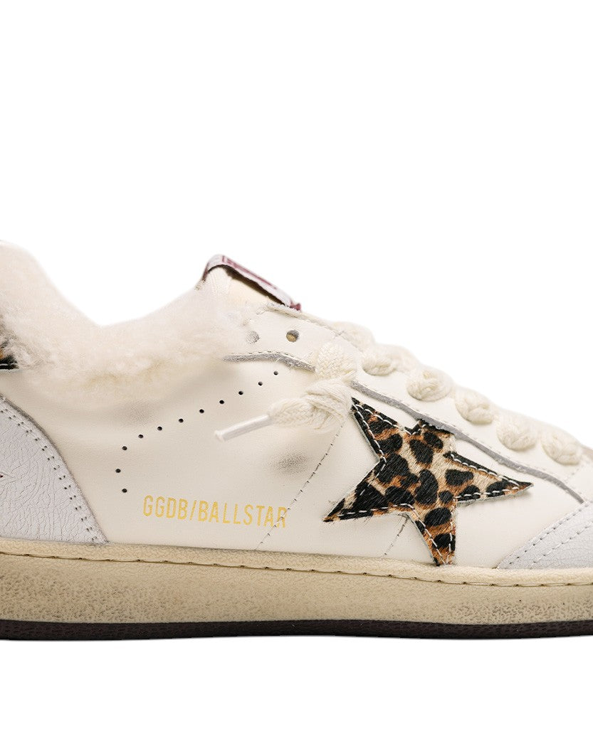 Golden Goose Ball Star in Wool White with Leopard Pony Skin Star and Heel Tab
