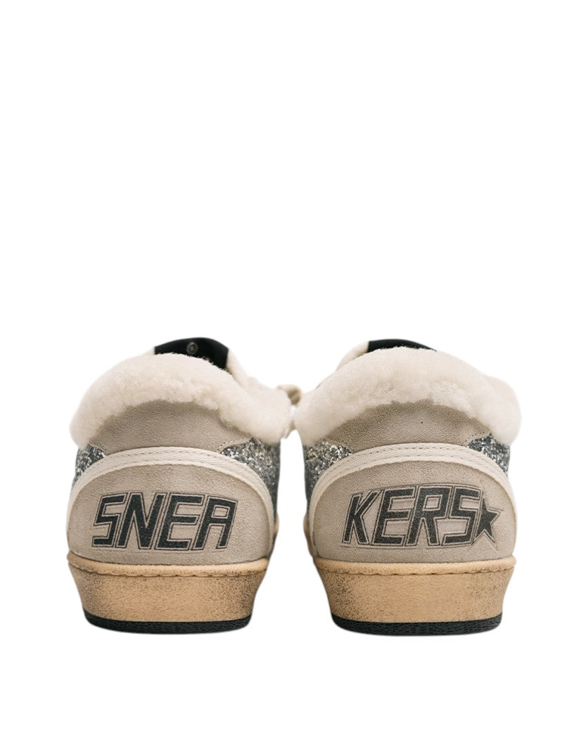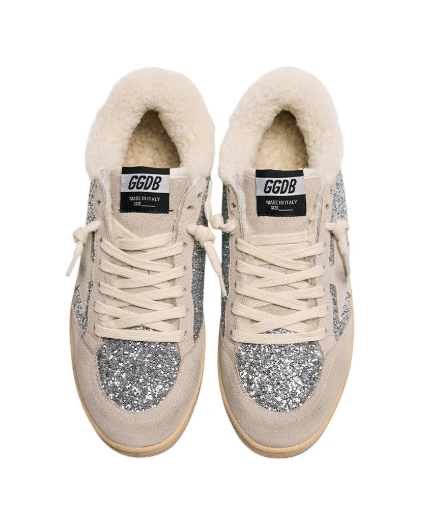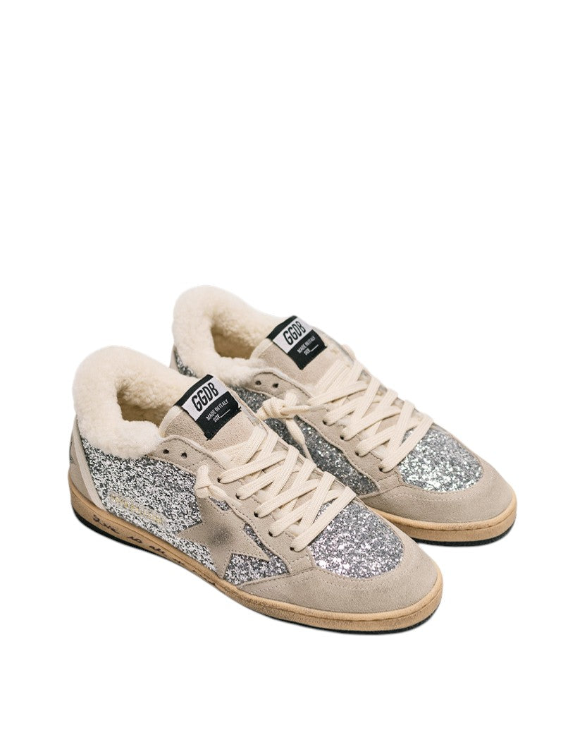 Ball Star у зимовій інтерпретації: срібний глітер, замшеві сірі вставки та тепла хутряна підкладка роблять модель яскравою і водночас комфортною. Кремова шкіряна основа, фірмовий вінтажний ефект та знайомий силует у стилі американських коледжів — ідеальний баланс між модою та повсякденністю.