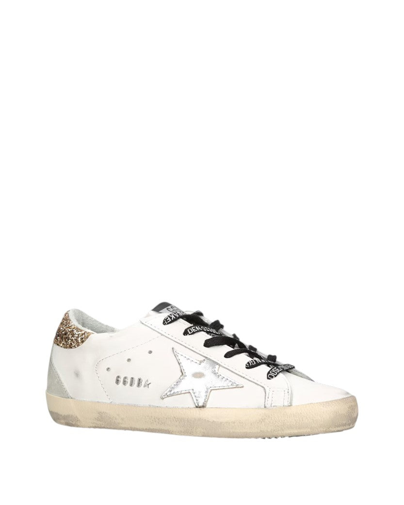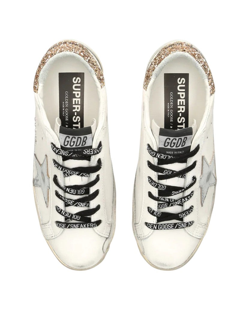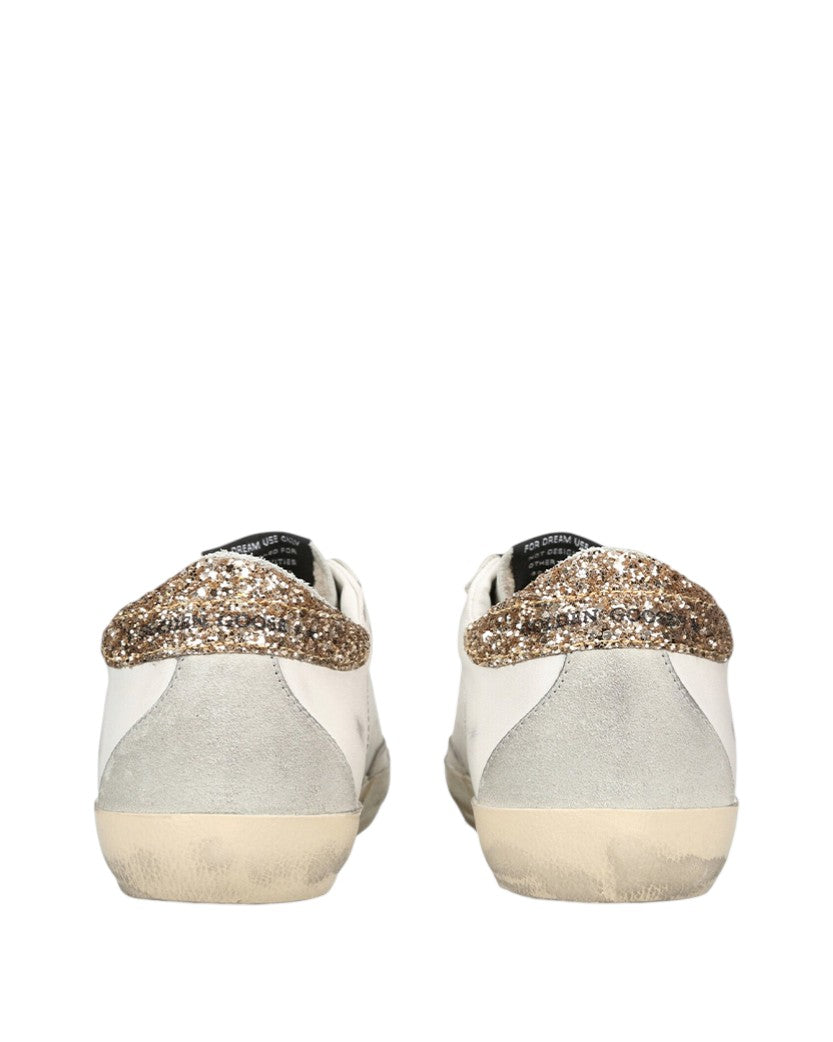 Golden Goose White Superstar Sneakers With Golden Glitter