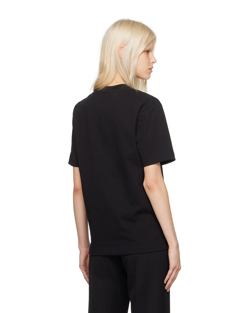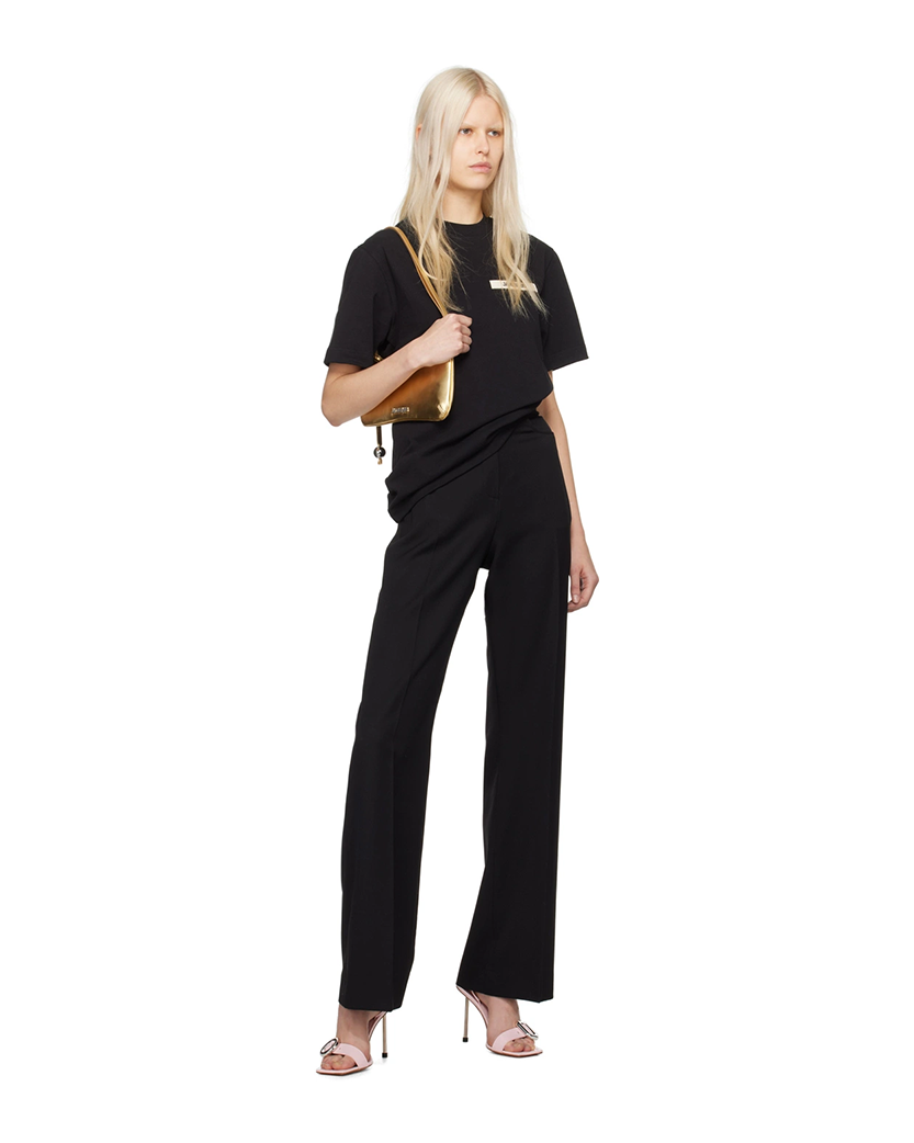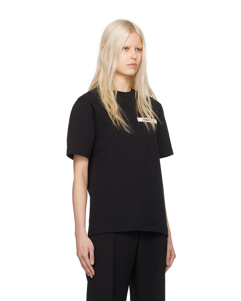 Le T-Shirt Gros Grain - піднесений стиль від Jacquemus, представлений цього сезону в універсальному чорному кольорі. Модель вільного крою, виготовлена з органічної бавовни, має традиційний ребристий виріз горловини та короткі рукава. На грудях зліва розташована нашивка з логотипом бренду.