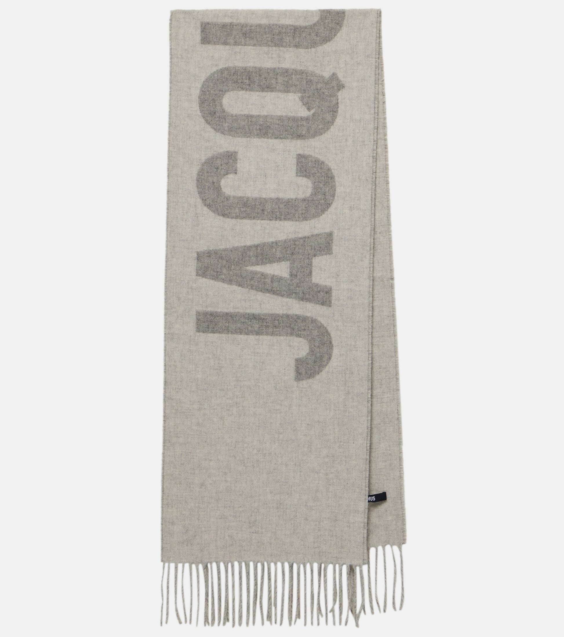 Jacquemus Logo Jacquard Fringed Edge Scarf Grey