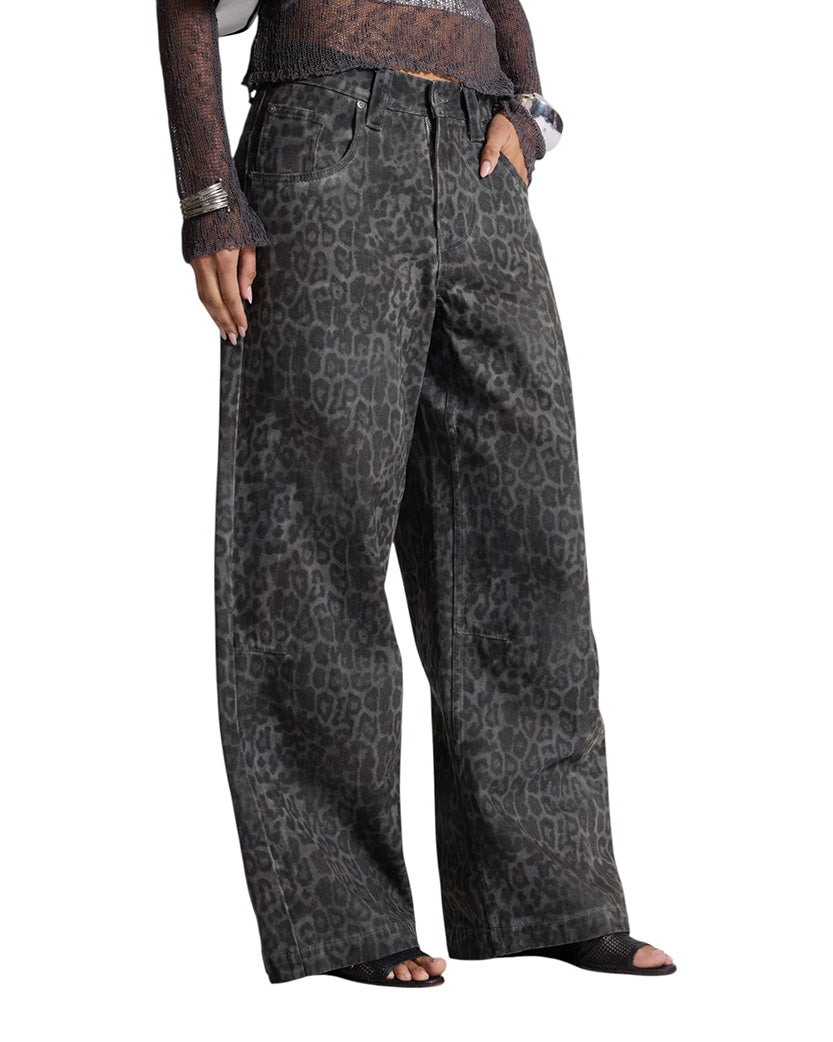 Джинси Jaded London Leopard Fade Colossus Jeans Charcoal — це смілива інтерпретація класичного деніму з характером. Модель вирізняється оригінальною низькою посадкою та пофарбована у глибокий вугільно-леопардовий принт, що додає образу виразності. Тональна прострочка підтримує стриману естетику, а виточки на колінах забезпечують комфорт і гарну посадку. Ідеальні для тих, хто цінує індивідуальність у деталях.