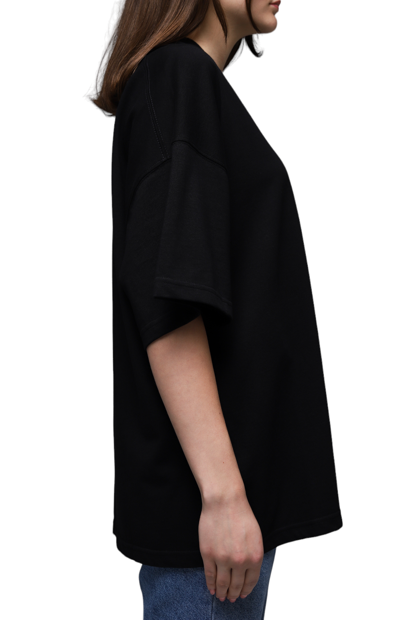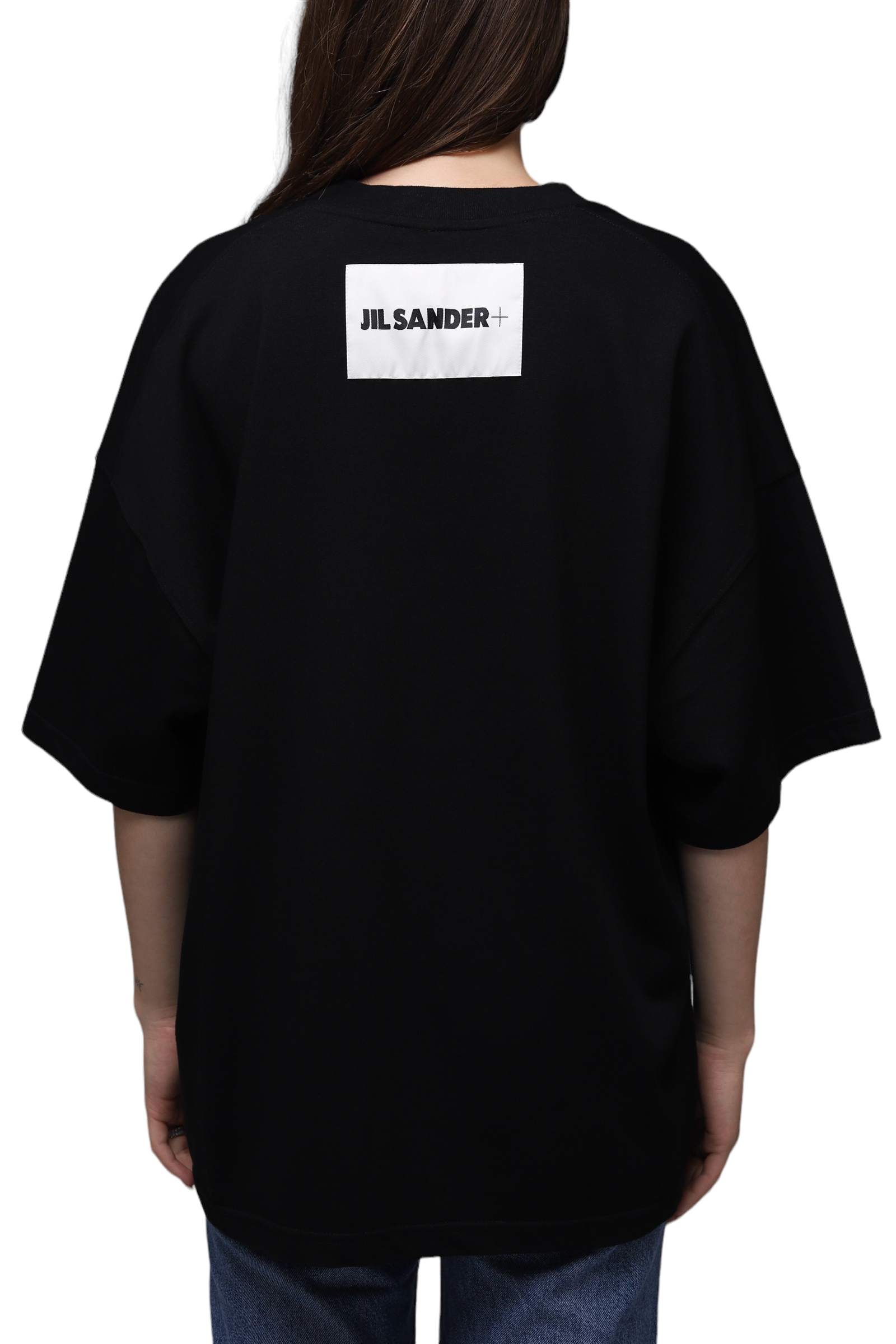 Футболка вільного крою, що не сковує навіть активні рухи. Модель пошили з м'якої бавовни джерсі, яка добре пропускає повітря. На чистому тлі цього тонкого, але міцного матеріалу напис у вигляді імені та прізвища Jil Sander має особливо яскравий і контрастний вигляд.