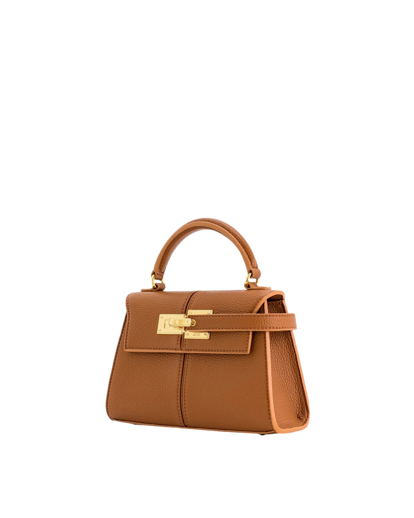 Ця елегантна сумка виготовлена з високоякісної веганської шкіри, що забезпечує стильний вигляд і екологічність. Компактні розміри роблять її ідеальним аксесуаром для повсякденного використання. Завдяки верхній ручці та знімному регульованому плечовому ременю її можна носити як через плече, так і в руці. Золотиста фурнітура додає вишуканості, а внутрішня прорізна кишеня зручна для зберігання дрібних речей.