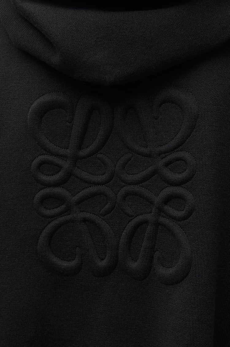 Худі з капюшоном Loewe Anagram у чорному кольорі - це зразок комфорту та стилю. Виготовлене з високоякісного вовняного матеріалу, що забезпечує затишок та зручність у носінні. Логотип Loewe, який розташований на спині, додає цьому виробу оригінальності та стилю. Чорний колір створює класичний і універсальний вигляд, що робить це худі ідеальним вибором для різних образів та сезонів. Завдяки зручній застібці-блискавці і капюшону, ця модель стане невід'ємною частиною вашого гардеробу.