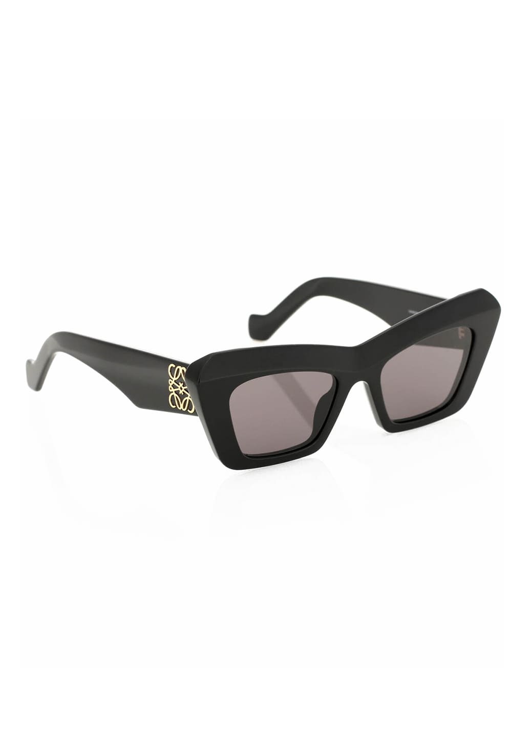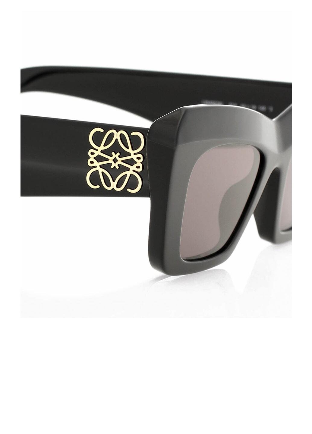 Сонцезахисні окуляри Loewe LW40036I. Геометрична оправа з чорного ацетату, виготовлена в Італії, прикрашена золотистою фурнітурою на скронях та логотипом лейблу у вигляді анаграми.