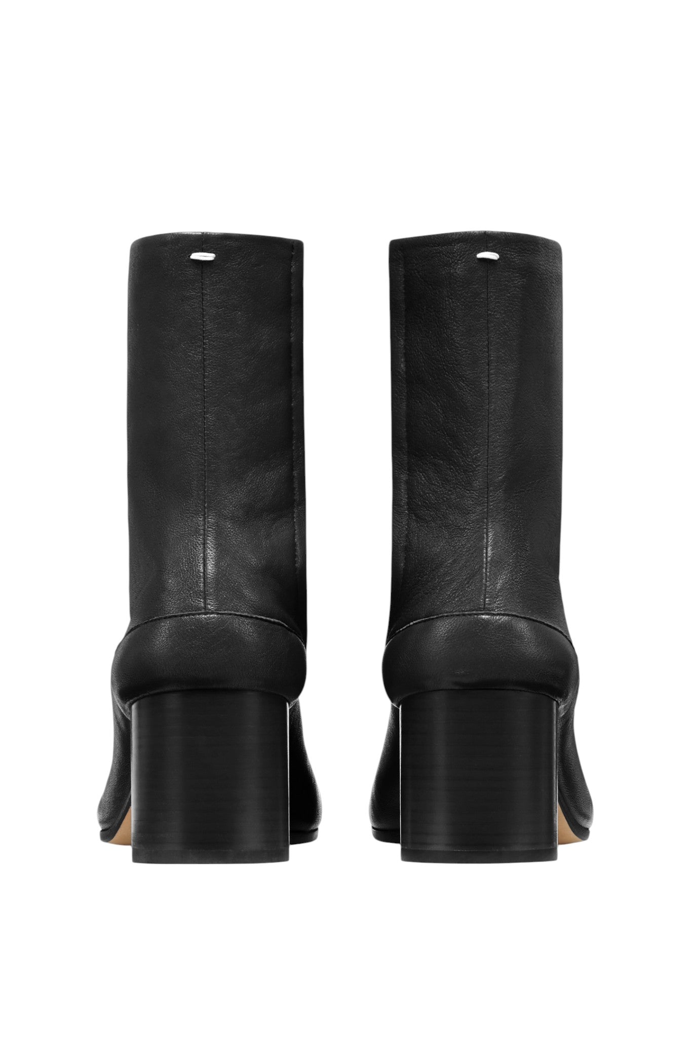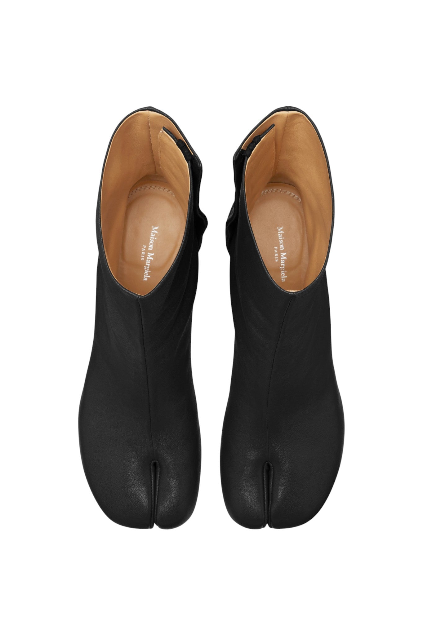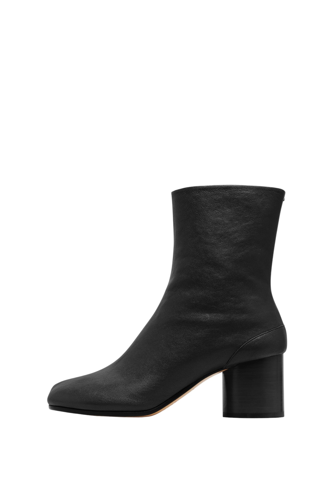 Maison Margiela Tabi Ankle Boots — культові ботильйони, що поєднують авангардний дизайн і бездоганну італійську майстерність. Виготовлені з м’якої шкіри наппа, вони мають циліндричний каблук висотою 6 см і характерну форму з розділеними пальцями Tabi, натхненну традиційними японськими шкарпетками XV століття. Вперше представлені у дебютній колекції Maison Margiela 1989 року, ці черевики символізують непокірний дух бренду та залишаються вічною іконою сучасного авангардного стилю.