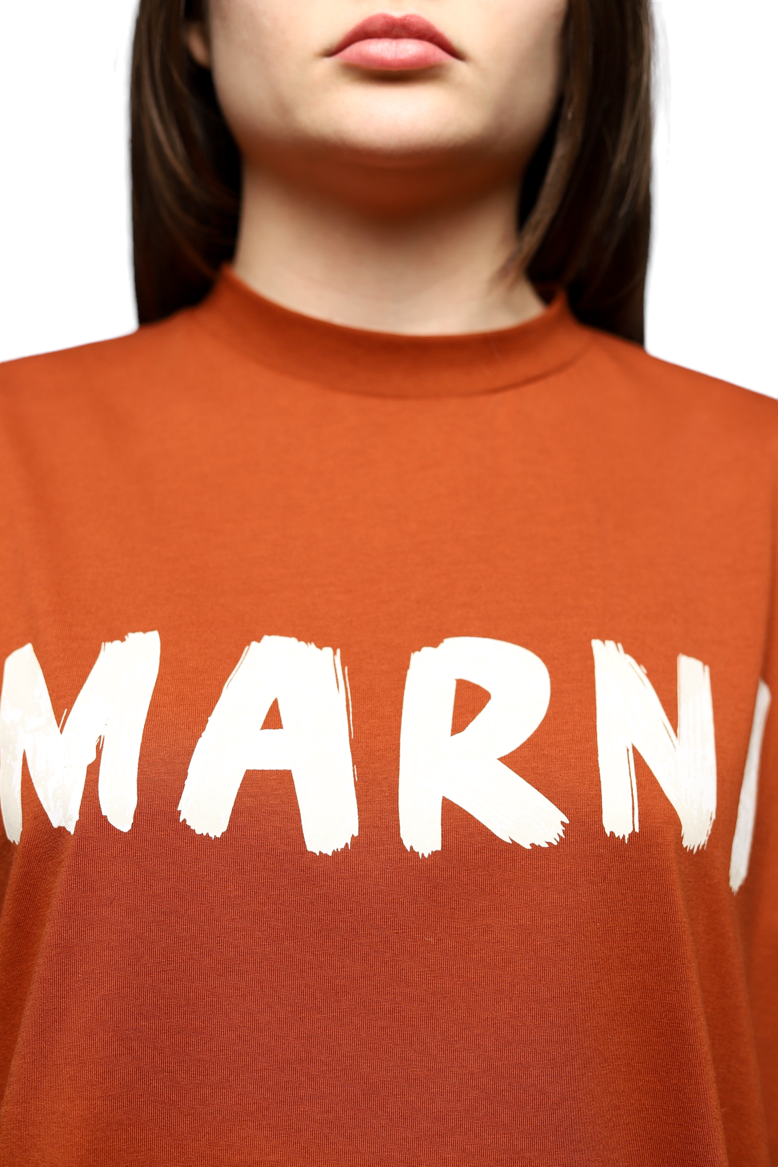 Базова футболка від Marni - це стильний елемент гардеробу, який виражає сучасність та індивідуальність. Вона має вільний крій та виготовлена з високоякісного матеріалу, який забезпечує комфорт під час носіння. Принт логотипу додає яскравого акценту до образу.