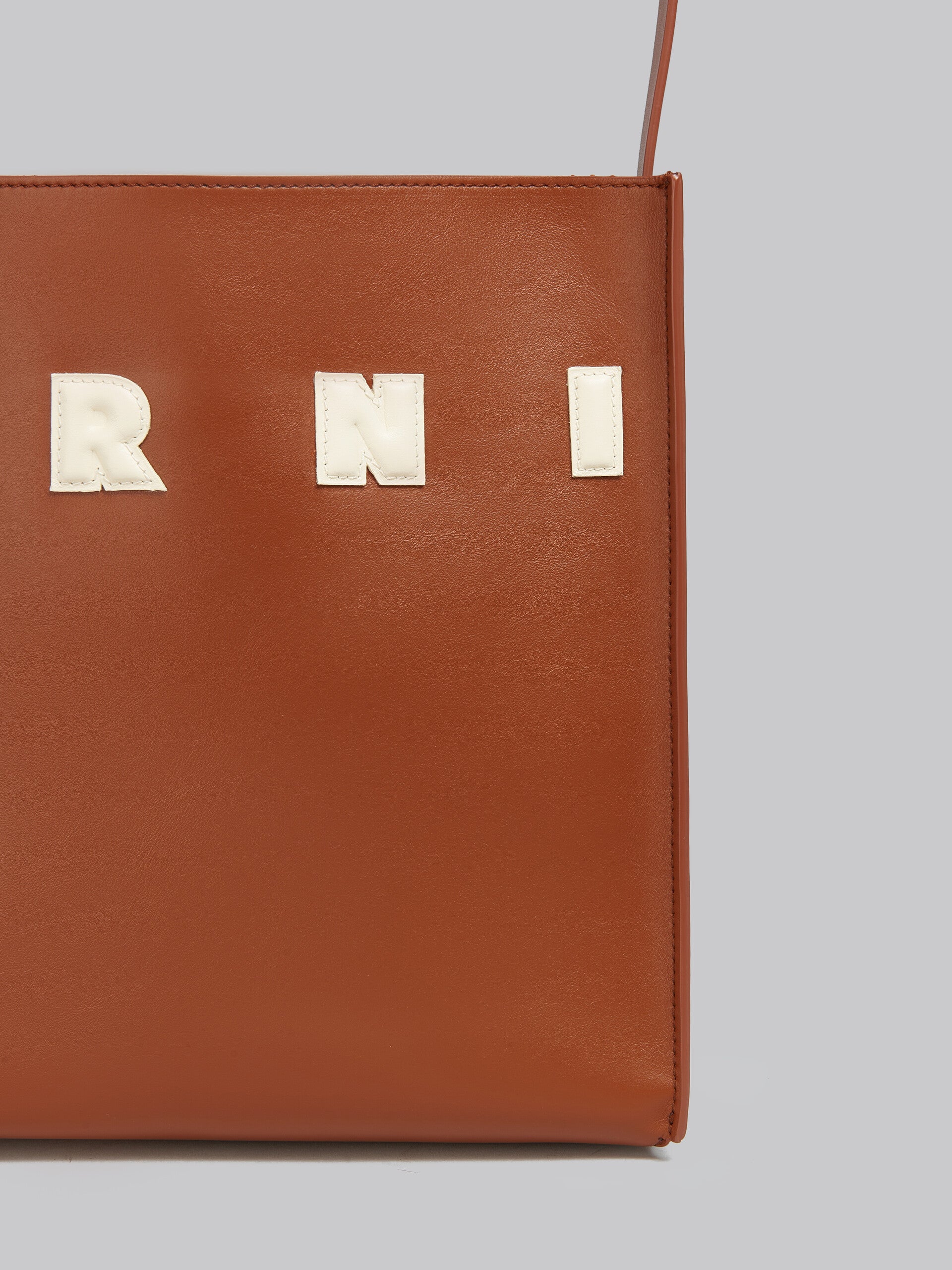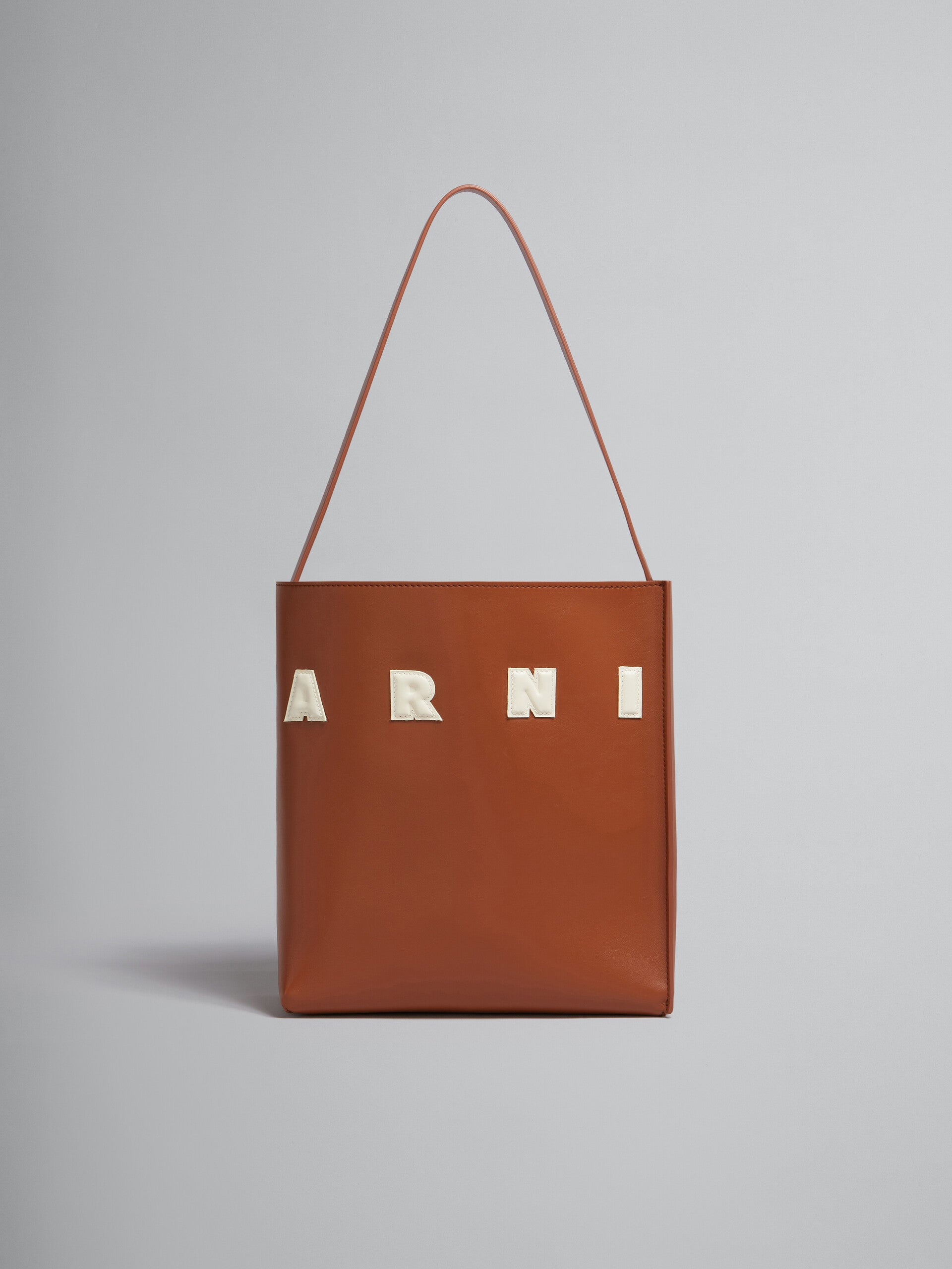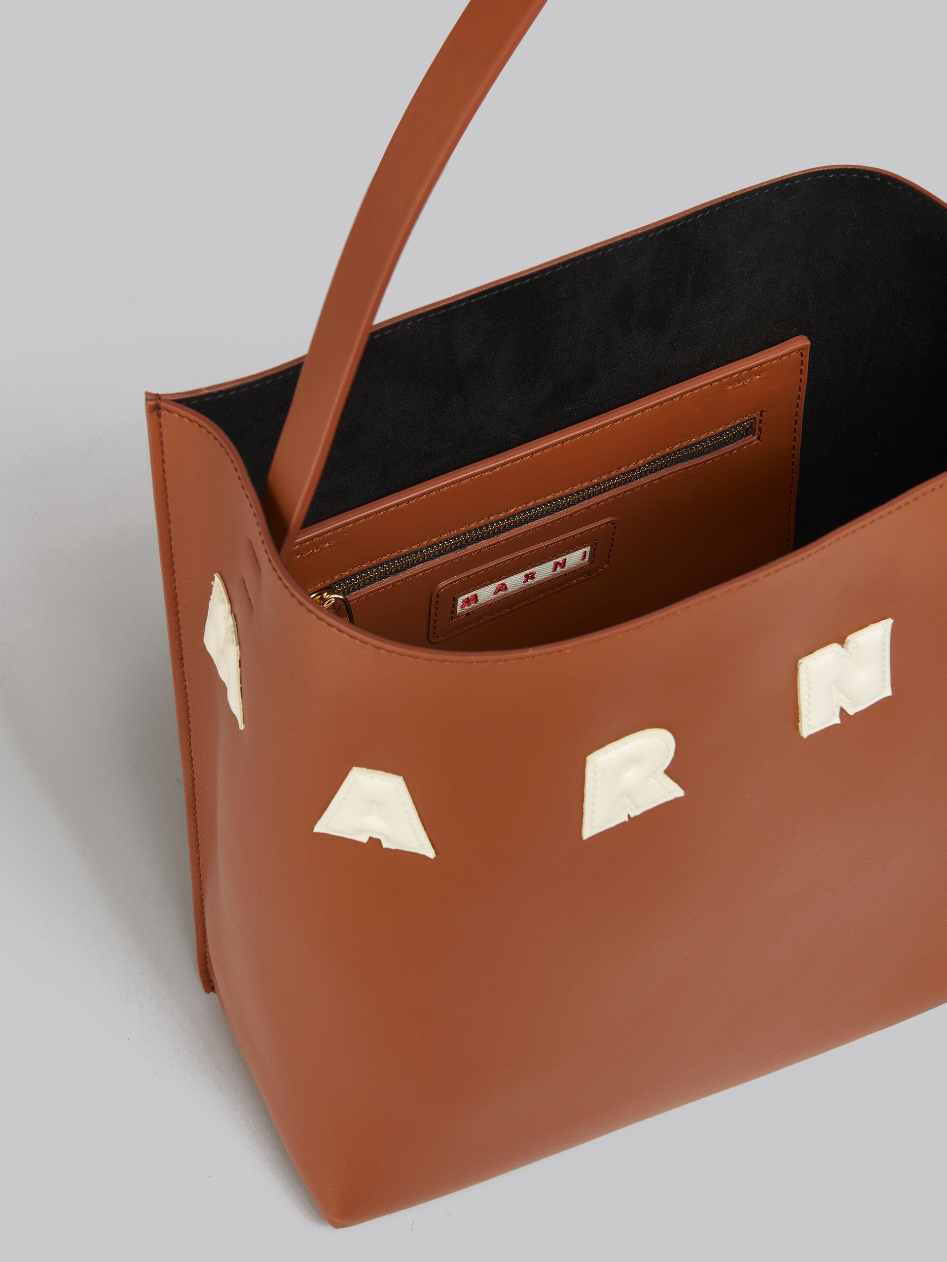 Сумка-хобо Museo від Marni виготовлена з гладкої натуральної шкіри і має невеликий розмір, що робить її ідеальною для повсякденного використання. Сумка має відкритий дизайн з однією верхньою ручкою, зручною для носіння, а також внутрішню частину на підкладці, з кишенею на блискавці для зберігання дрібних предметів. Нашивка з логотипом надає виробу додаткового шарму та підтверджує його автентичність.