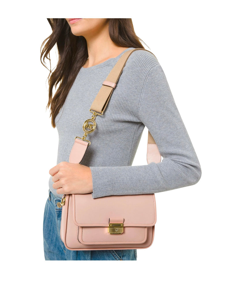 Michael Kors Bradshaw Medium Leather Messenger Bag in Soft Pink