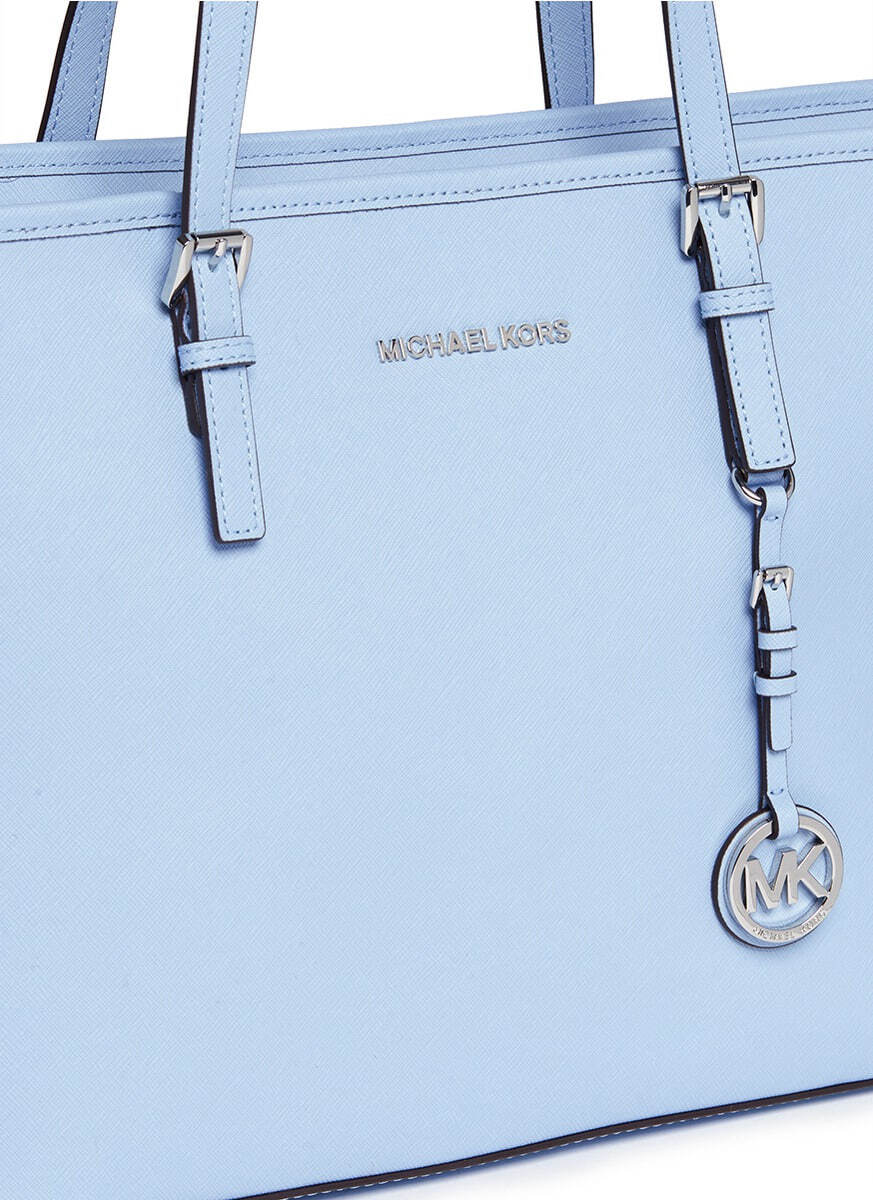 Сумка Michael Kors Jet Set Travel Tote блакитного кольору - це стильний і практичний аксесуар, який стане відмінним вибором для повсякденного використання. Вона має два основних відділи, які дозволяють зручно організувати ваші речі. Між цими відділеннями знаходиться додаткове відділення на блискавці для зберігання додаткових предметів. У внутрішньому відділі знаходяться три відкриті кишені для зручного зберігання різних предметів, таких як телефон або ключі. В другому відділенні також є три кишені, одна з яких забезпечена блискавкою для зберігання цінних речей. Гравіювання логотипу та срібляста фурнітура додають сумці елегантності та стилю.