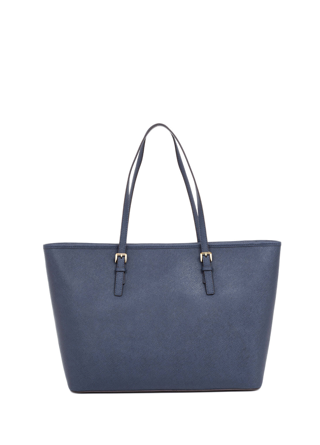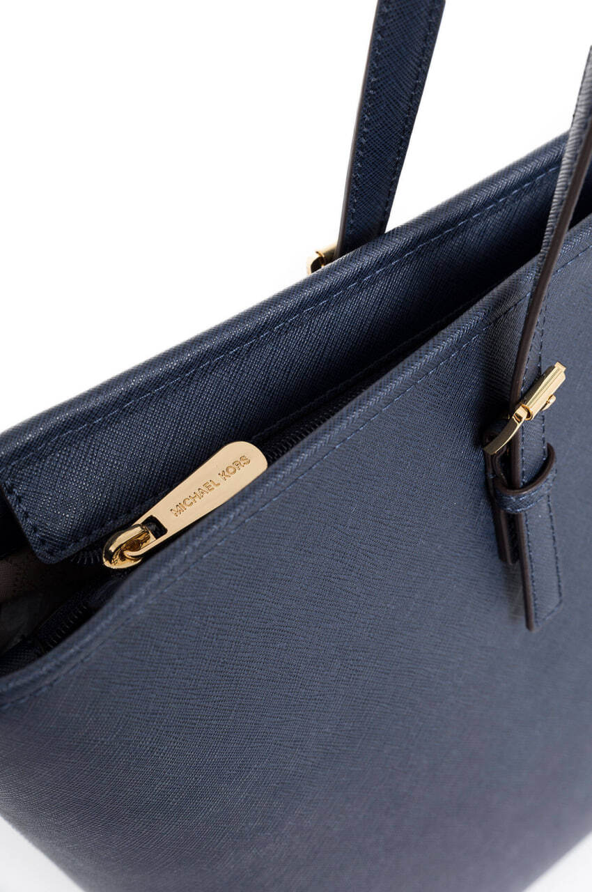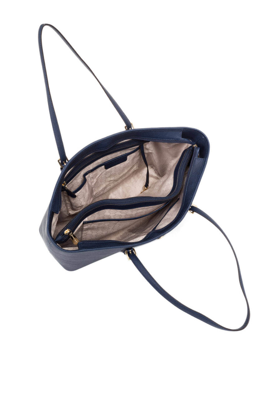Сумка Michael Kors Jet Set Travel Tote синього кольору - це стильний і практичний аксесуар, який стане відмінним вибором для повсякденного використання. Вона має два основних відділи, які дозволяють зручно організувати ваші речі. Між цими відділеннями знаходиться додаткове відділення на блискавці для зберігання додаткових предметів. У внутрішньому відділі знаходяться три відкриті кишені для зручного зберігання різних предметів, таких як телефон або ключі. В другому відділенні також є три кишені, одна з яких забезпечена блискавкою для зберігання цінних речей. Гравіювання логотипу та золотиста фурнітура додають сумці елегантності та стилю.