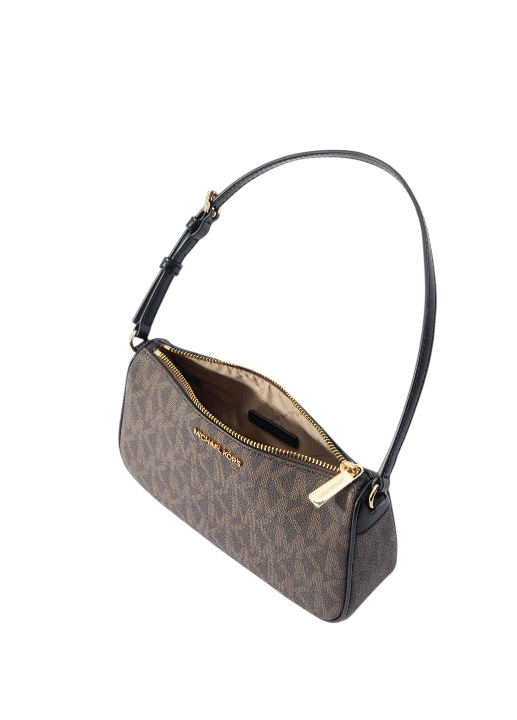 Michael Kors Signature Jet Set Medium Pouchette Bag Brown Edging Black