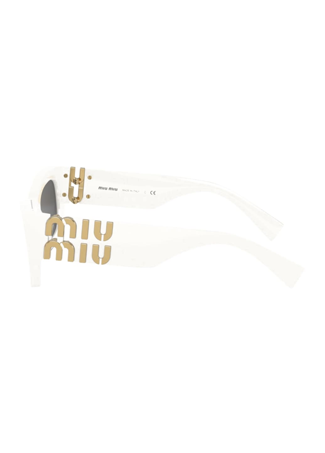 Ці прямокутні сонцезахисні окуляри з ацетату зі сміливим дизайном інтерпретують бунтарську жіночність. Характерна низькопрофільна оправа підкреслена новим вертикальним логотипом Miu Miu, інтегрованим у дужки товстих заушників.