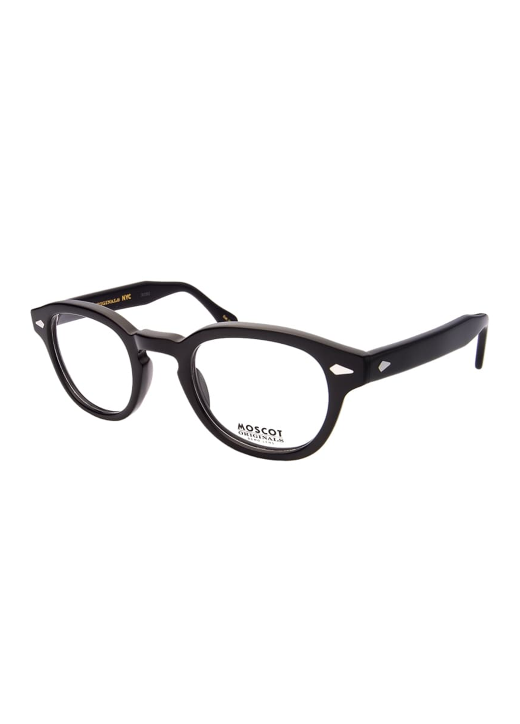 Кругла оправа Moscot Originals Lemtosh у чорному кольорі та прозорими демо лінзами.