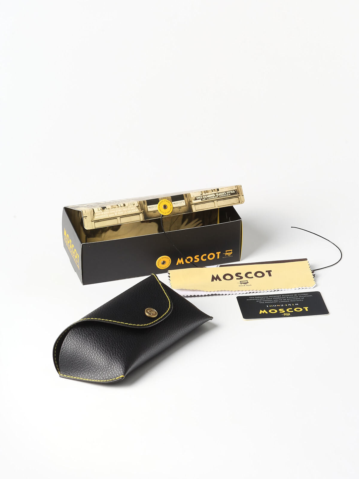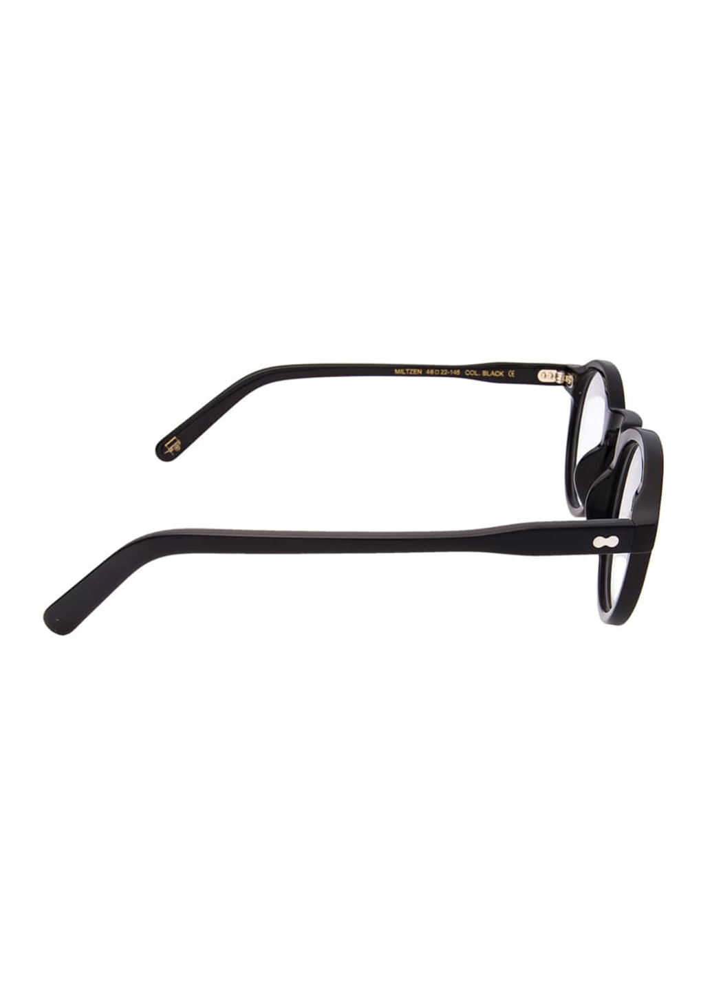 Кругла оправа Moscot Originals Miltzen у чорному кольорі та прозорими демо лінзами.