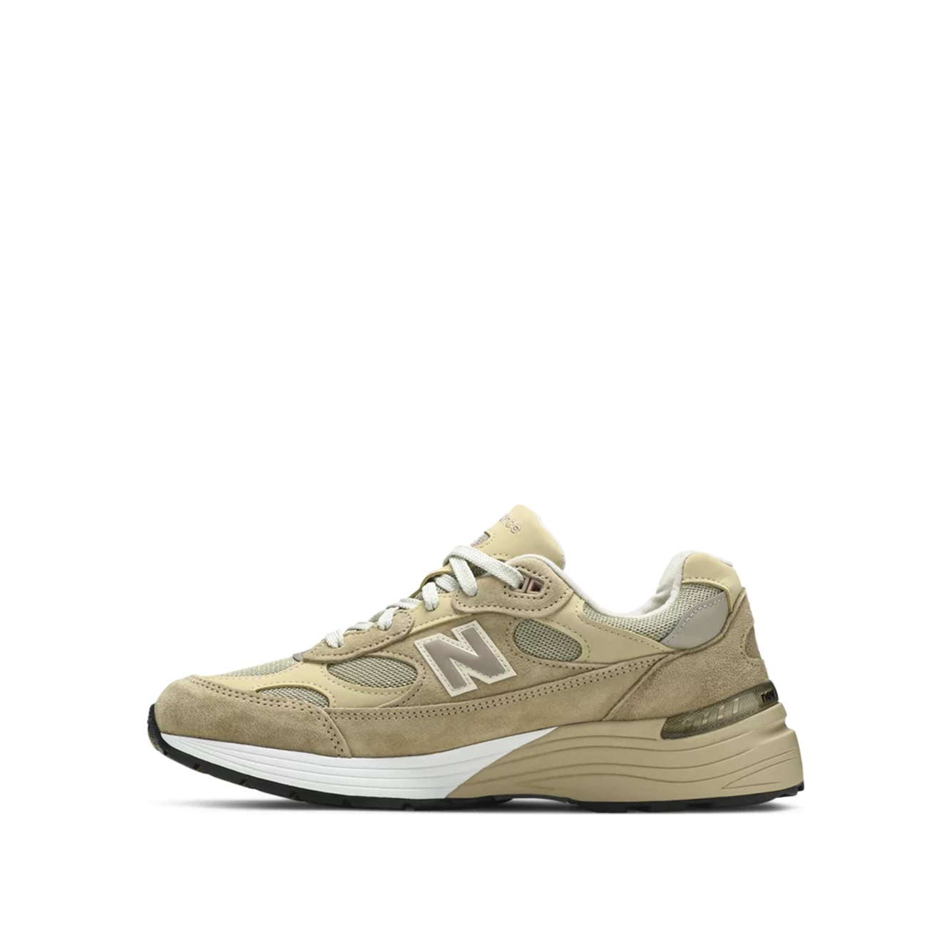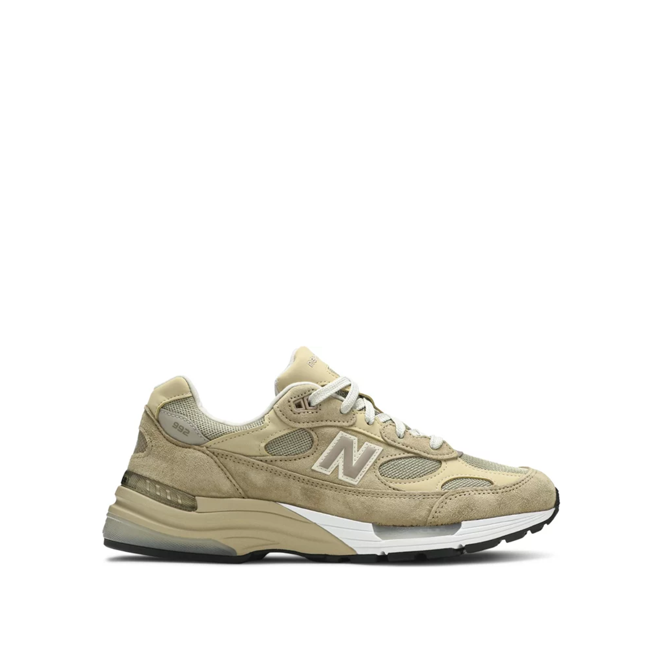 New Balance 992 Tan - це класичні кросівки для бігу в стилі лайфстайл у стриманому монохромному виконанні. Верх, виготовлений із сітки з тональними замшевими накладками, має світловідбиваючі акценти на передній частині стопи, п'яті та фірмовий логотип "N". Інші фірмові елементи включають напис "New Balance 992" на язичку та знак USA на п'яті, який вказує на походження кросівок. Проміжна підошва ABZORB забезпечує легку амортизацію.