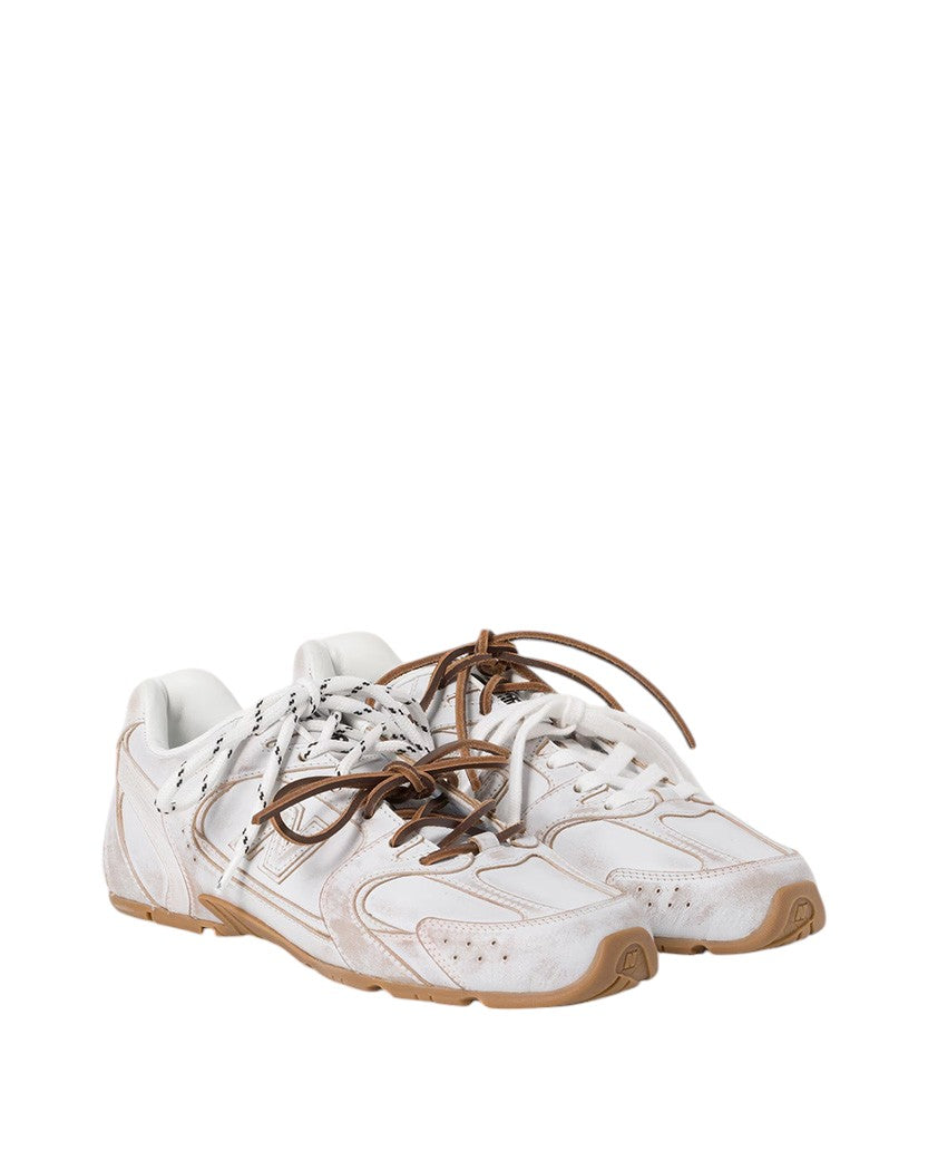 Цей ексклюзивний вінтажний стиль шкіри є результатом співпраці між Miu Miu та New Balance. Miu Miu повністю оновлює структуру, роблячи її надлегкою, грає мереживами в контрастному кольорі та фактурі. Логотип доповнює дизайн культовим фірмовим штрихом.