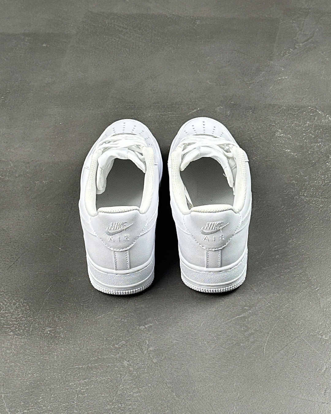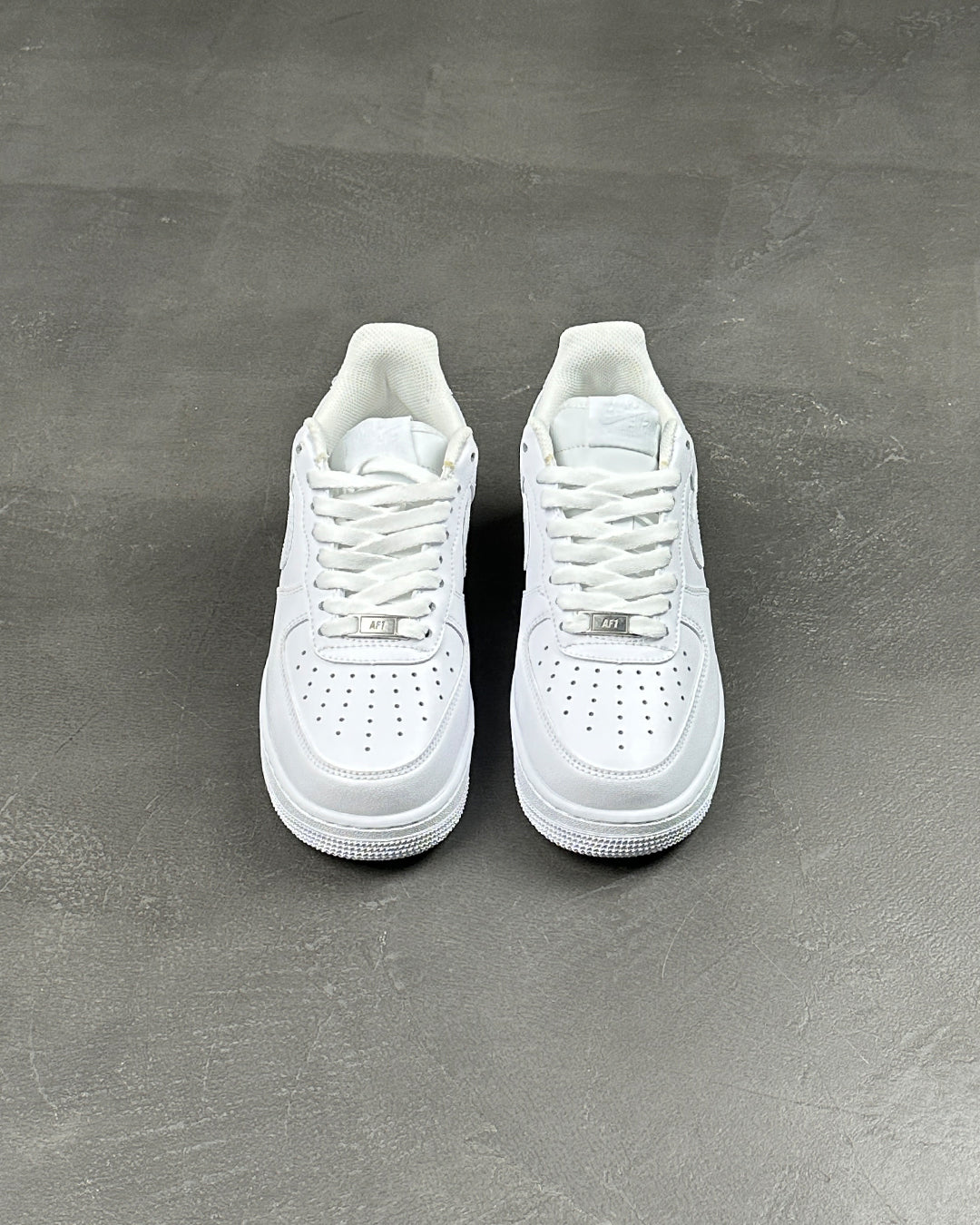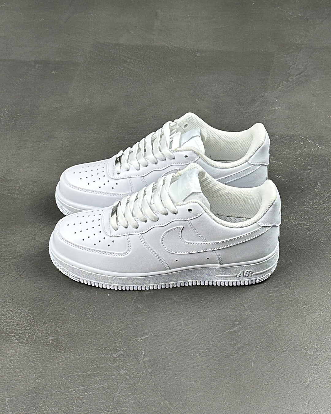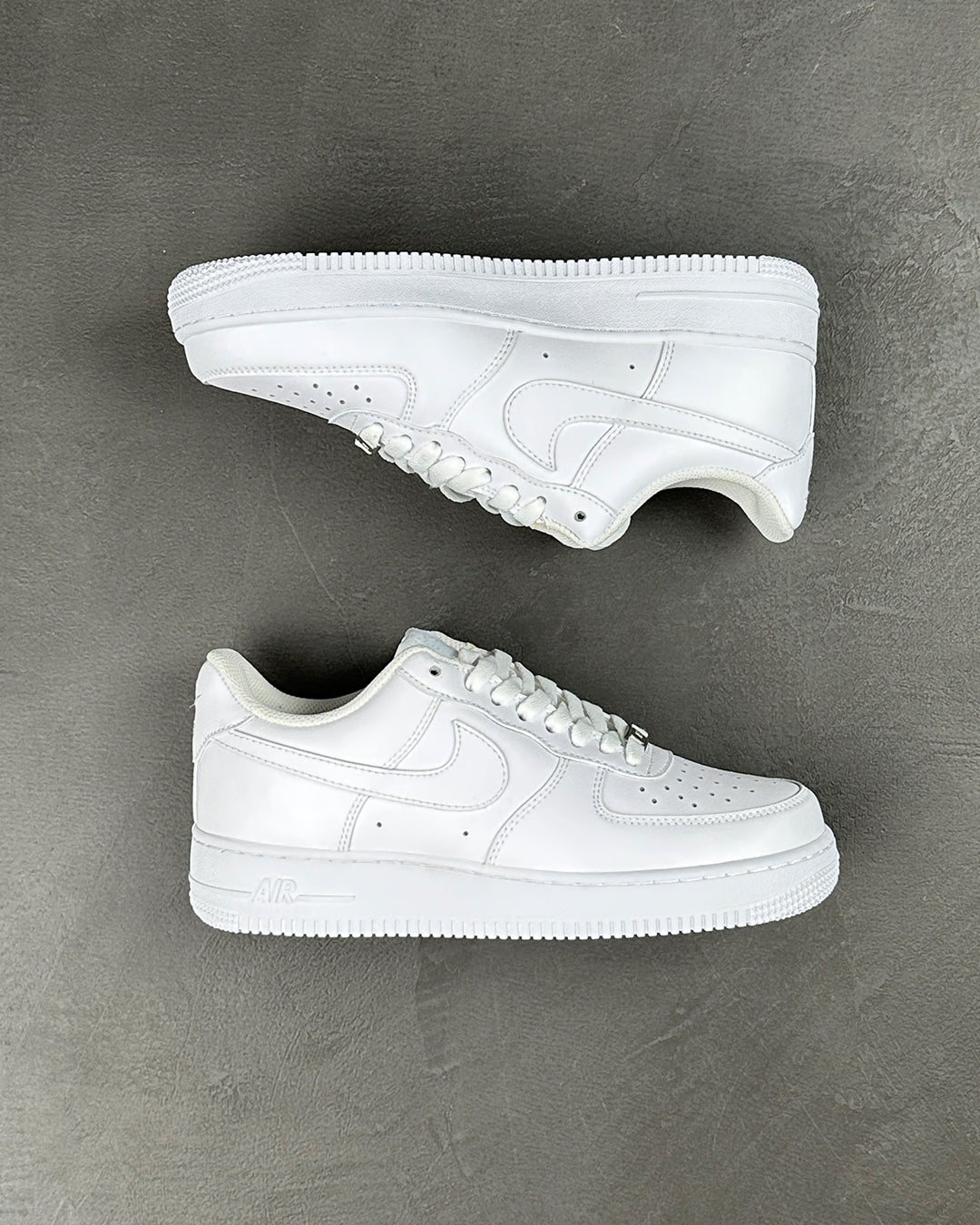 Nike Air Force 1 Low '07 White - це сучасний погляд на культові білі низькі кросівки Air Force 1. Випущені на честь 25-річчя класичних кросівок у 2007 році, ці кросівки мають оновлений, більш хрусткий верх з повнозернистої шкіри 10A білого кольору та відповідну білу гумову підошву Air-cushioned.