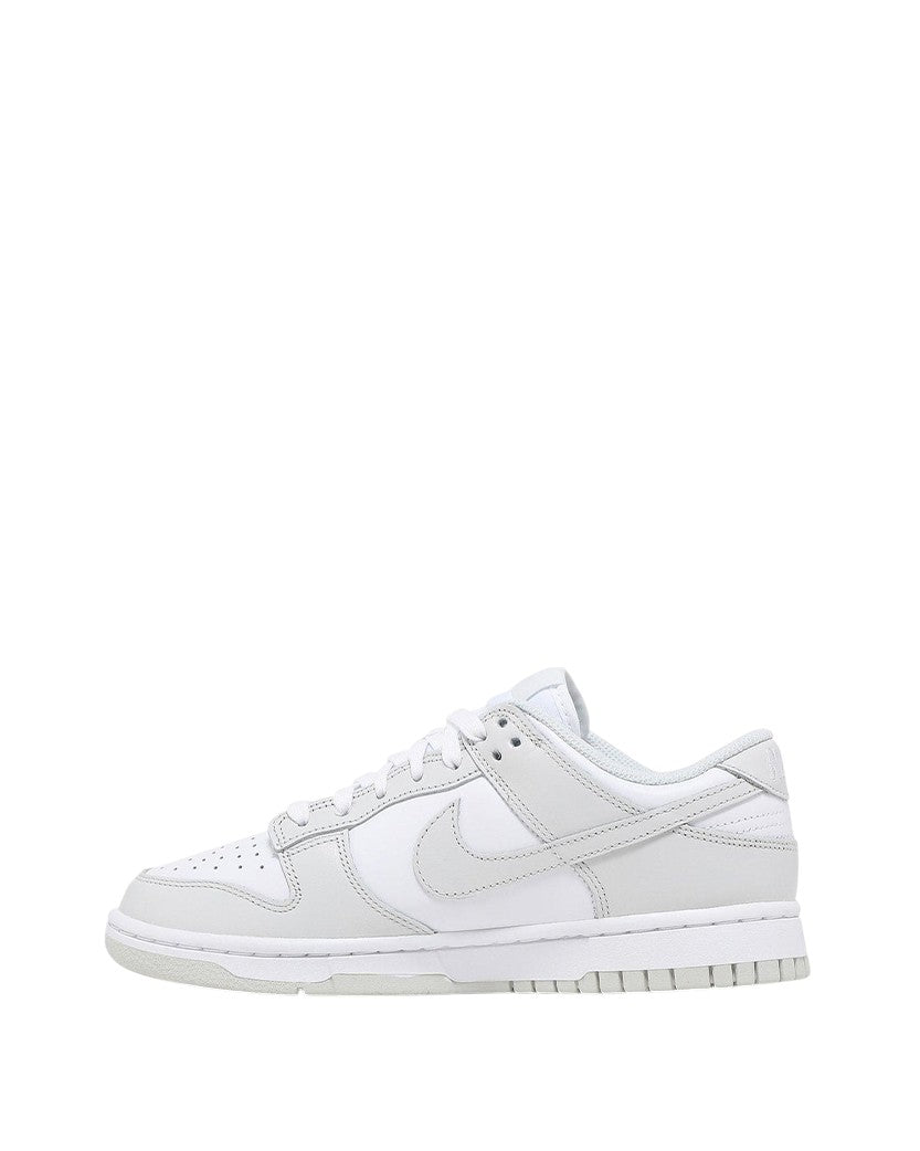 Кросівки Nike Dunk Low Photon Dust - це стриманий колір баскетбольних кросівок, що стали популярним елементом вуличного одягу. Низькі кросівки мають повністю шкіряний верх, повністю виконаний у нейтральних білих та сірих тонах. Естетика OG підкреслена традиційними фірмовими елементами, включаючи тканий язичковий ярлик Nike та вишитий напис Nike на п'ятці. Підошва з гуми має малюнок зчеплення з поверхнею, який майже ідентичний до іншого випуску 1985 року, Air Jordan 1.
