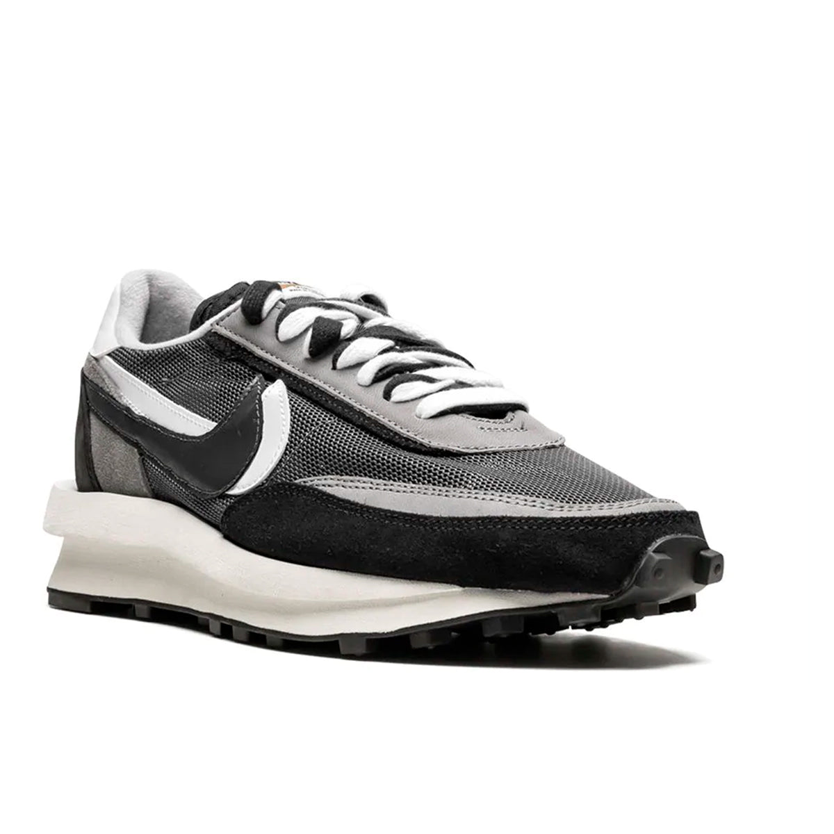 Гібрид двох культових кросівок Nike, Sacai x LDWaffle - це експериментальний дизайн, типовий для провокаційної естетики японського модного бренду. Ця "чорна" версія, представлена у вересні 2019 року, виконана в сітці з двоколірною замшею на носку, заднику і на підйомі. Концепцію подвійності підкреслюють шкіряні Swooshes, парні язички та ко-брендинг на п'яті. Подвійна скульптурна підошва розташована над традиційною гумовою вафельною підошвою.