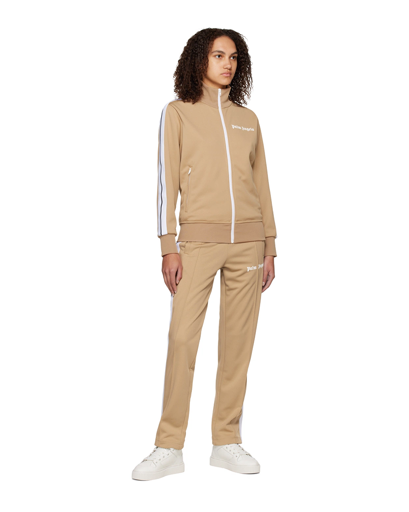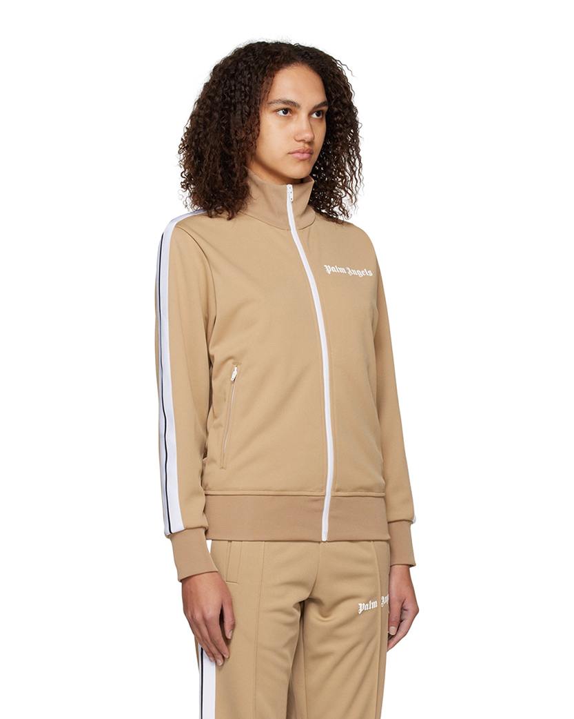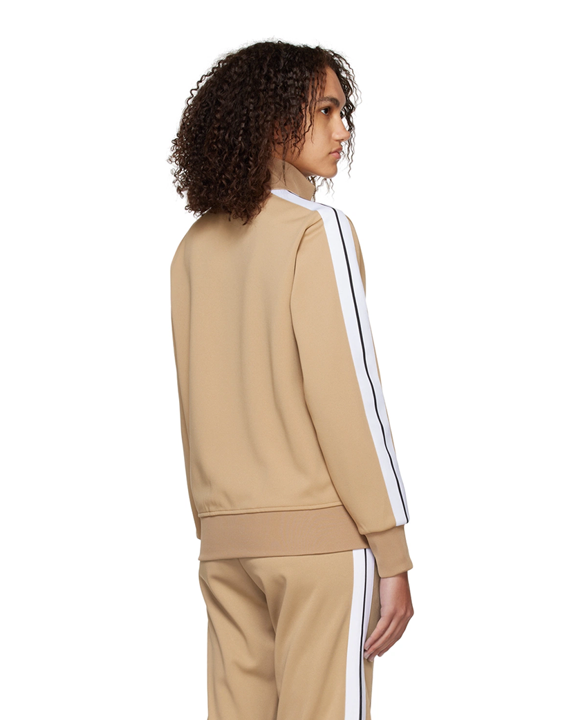 Palm Angels Track Jacket — це спортивна куртка, що поєднує в собі стиль ретро та сучасну урбаністику. Модель виконана з гладкого поліестеру, який забезпечує комфорт і зносостійкість. Куртка має високий комір-стійку, манжети та нижній край із ребристої тканини, застібку-блискавку по центру, а також бокові кишені на блискавках. Фірмовий логотип Palm Angels розміщено на грудях, а контрастні смуги вздовж рукавів додають динамічності силуету. Внутрішня підкладка з м’якого джерсі гарантує комфорт під час носіння.