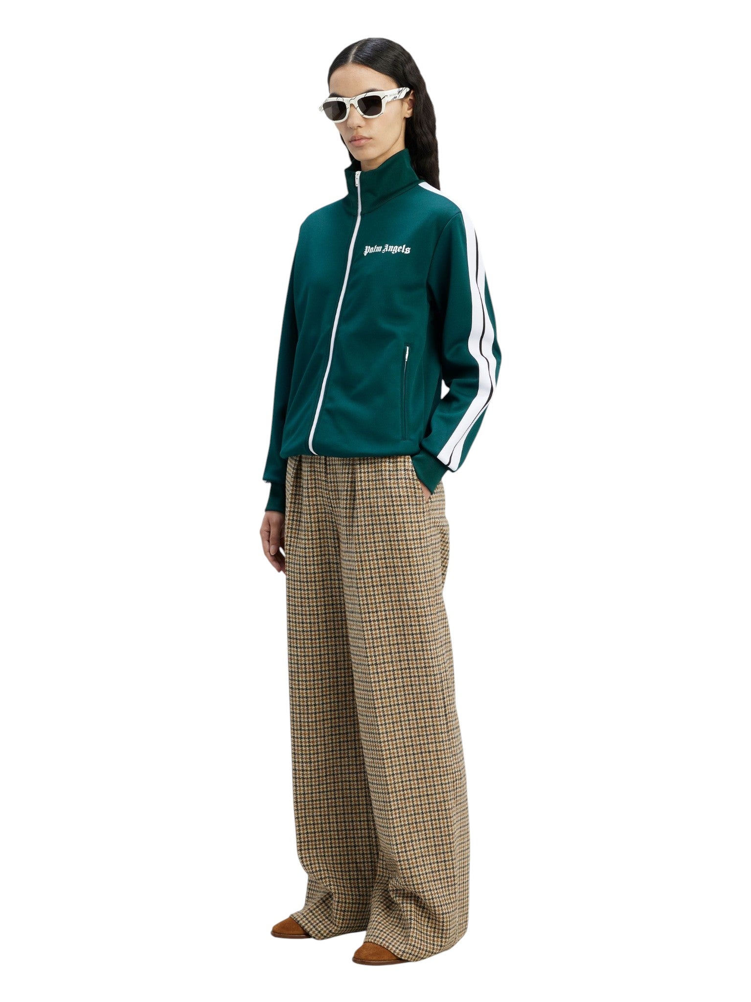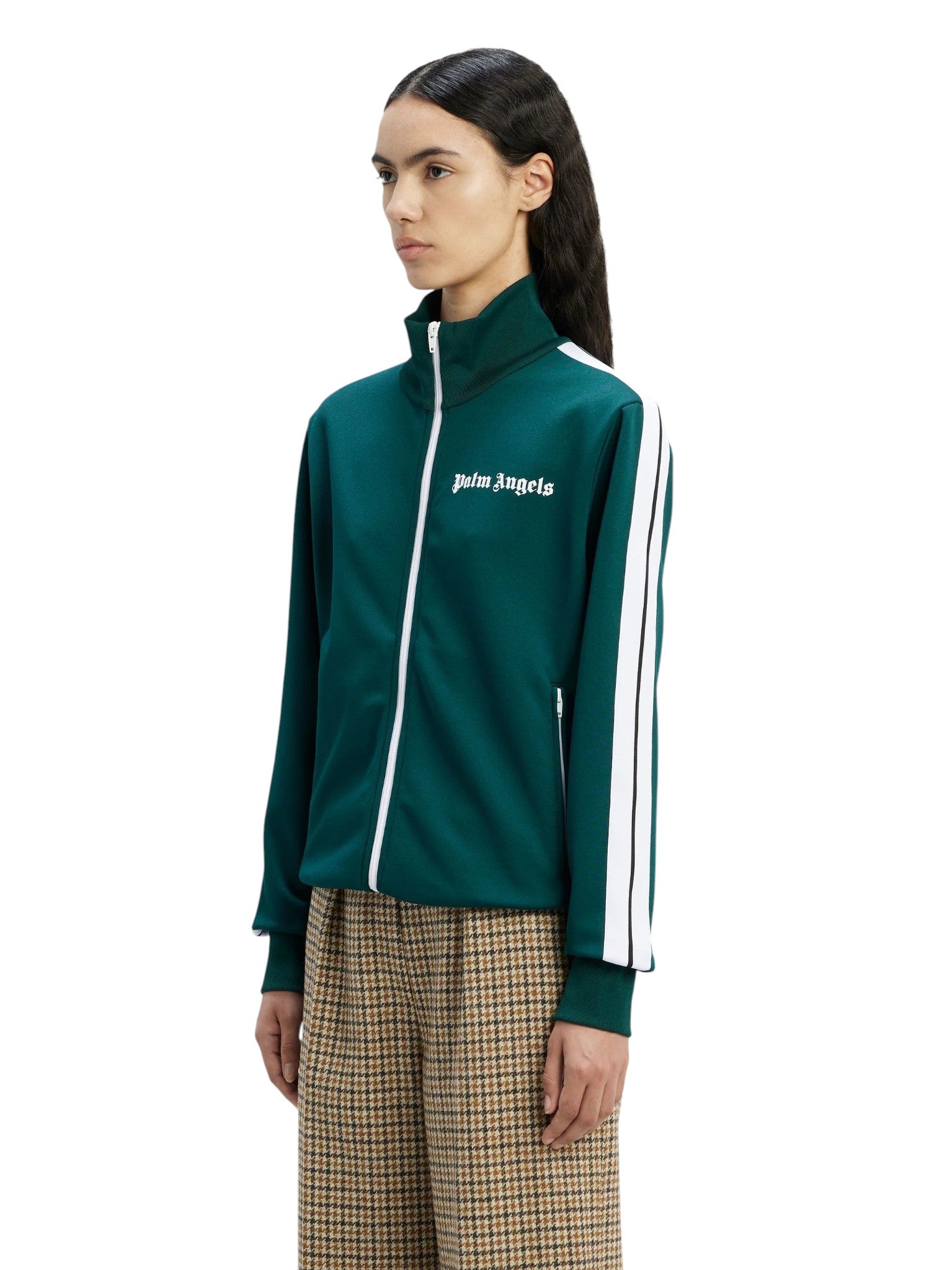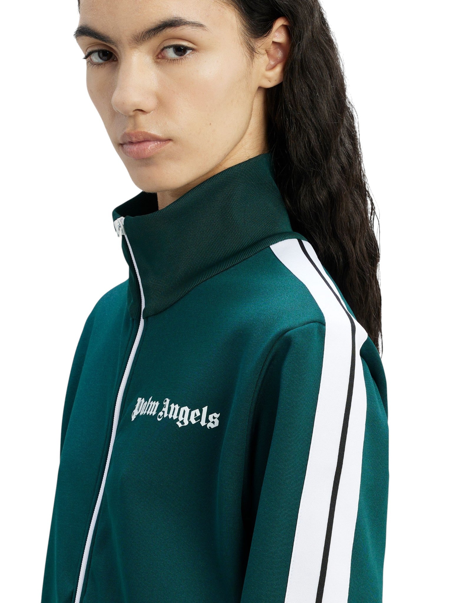 Palm Angels Track Jacket — це спортивна куртка, що поєднує в собі стиль ретро та сучасну урбаністику. Модель виконана з гладкого поліестеру, який забезпечує комфорт і зносостійкість. Куртка має високий комір-стійку, манжети та нижній край із ребристої тканини, застібку-блискавку по центру, а також бокові кишені на блискавках. Фірмовий логотип Palm Angels розміщено на грудях, а контрастні смуги вздовж рукавів додають динамічності силуету. Внутрішня підкладка з м’якого джерсі гарантує комфорт під час носіння.