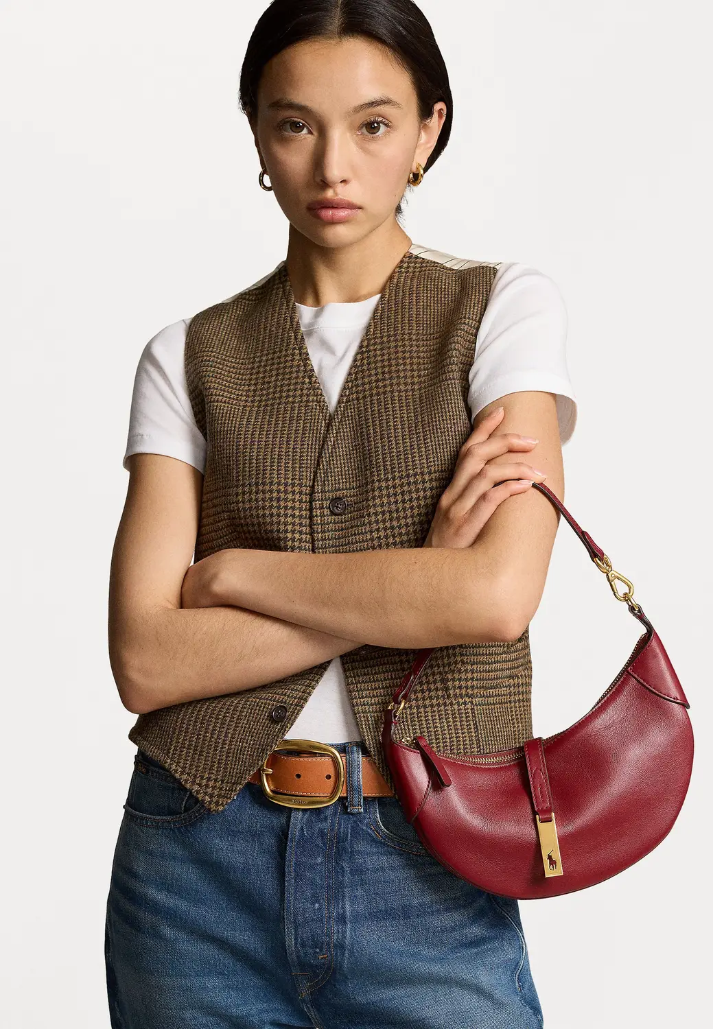 Ця італійська шкіряна міні-сумка через плече з колекції Polo ID, натхненна почуттям пригод, романтикою та оптимізмом, викликає в пам'яті жваву елегантність і тонку кінську чуттєвість завдяки своєму силуету сідла з двома відділеннями, що може трансформуватися з сумки на плече в наручний браслет у формі круасана. Він завершується латунною бляшкою з силуетом нашого фірмового поні, вирізаним на латунній фурнітурі золотистого кольору, що нагадує вінтажні браслети з посвідченнями особи.