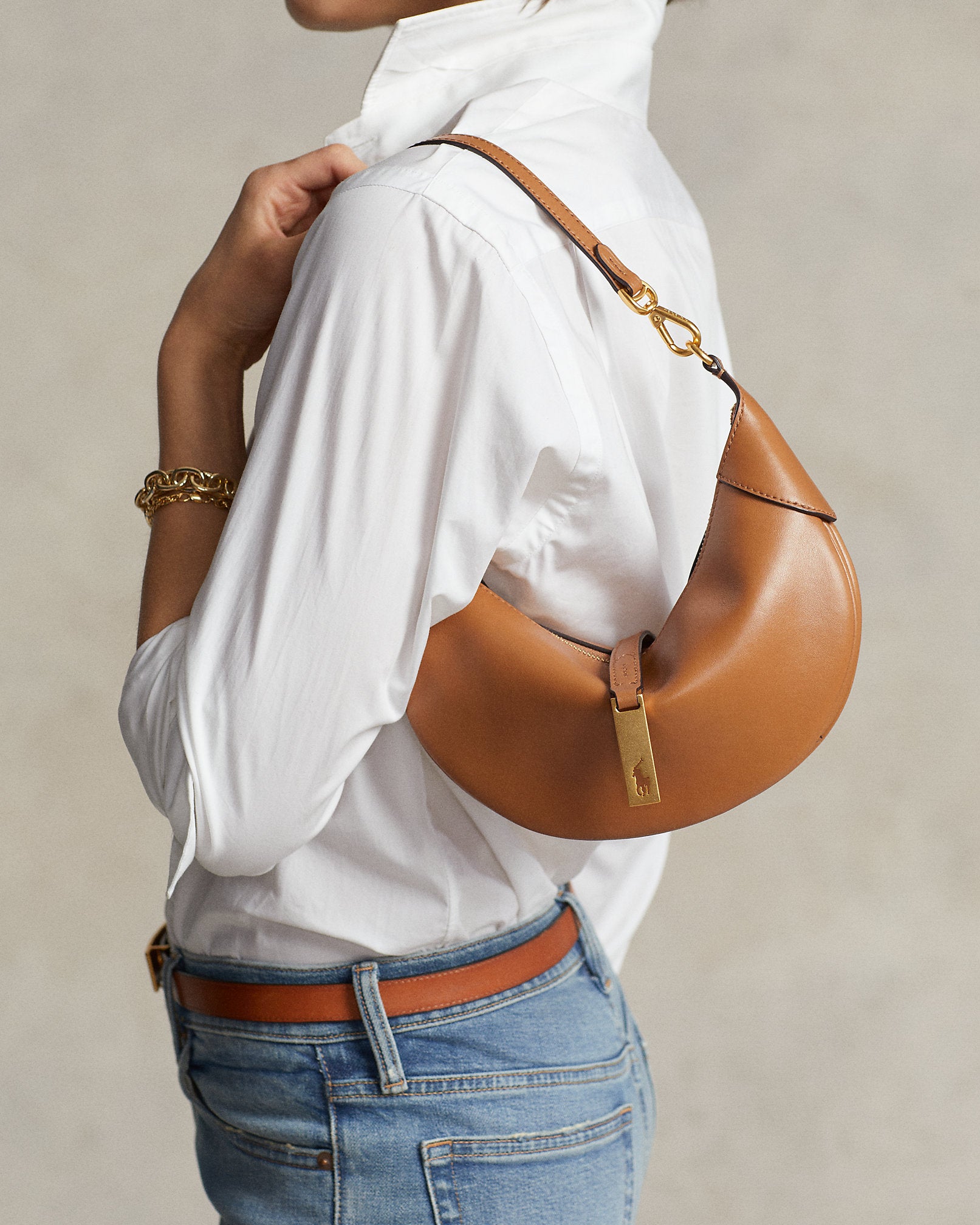 Ця італійська шкіряна міні-сумка через плече з колекції Polo ID, натхненна почуттям пригод, романтикою та оптимізмом, викликає в пам'яті жваву елегантність і тонку кінську чуттєвість завдяки своєму силуету сідла з двома відділеннями, що може трансформуватися з сумки на плече в наручний браслет у формі круасана. Він завершується латунною бляшкою з силуетом нашого фірмового поні, вирізаним на латунній фурнітурі золотистого кольору, що нагадує вінтажні браслети з посвідченнями особи.