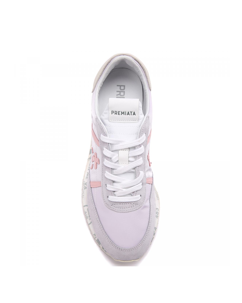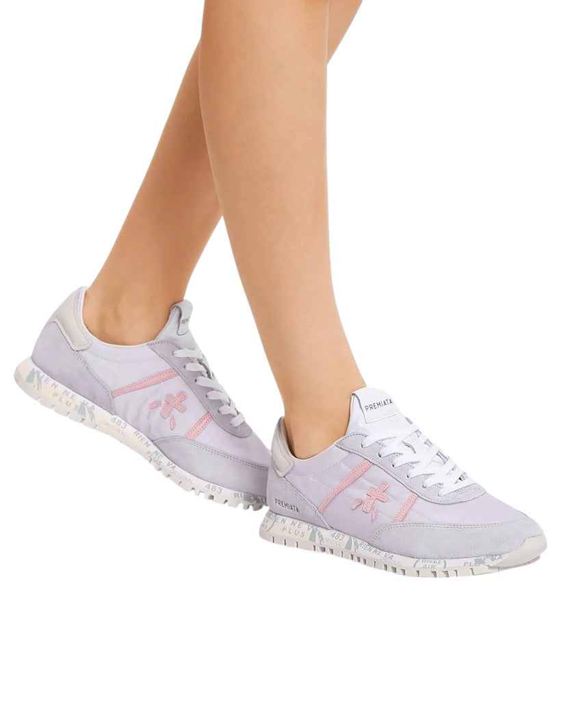 Premiata Seand 5630 Sneakers Lilac — витончена інтерпретація класичних кросівок у м’якій ліловій палітрі. Верх моделі поєднує замшу та текстиль, створюючи легкий, дихаючий силует із глибокою фактурністю. Контрастні деталі та фірмовий логотип на боковій частині додають характерного преміального акценту.