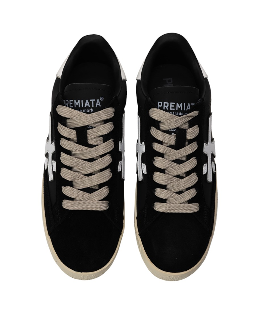 Кросівки Premiata Stevend — це сучасна інтерпретація класичного міського стилю з характерною для бренду увагою до деталей. Модель має низький силует з контрастними вставками та легким вінтажним ефектом, доповнена перфорованими деталями, культовим логотипом та фірмовою підошвою з гуми. Усередині — м’яка підкладка для комфорту, а універсальний дизайн робить ці кросівки ідеальними як для повсякденних образів, так і для поєднання з більш вишуканим одягом.