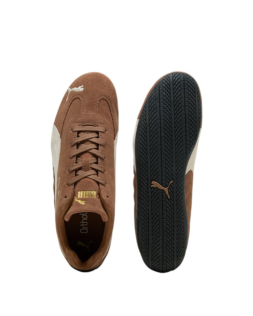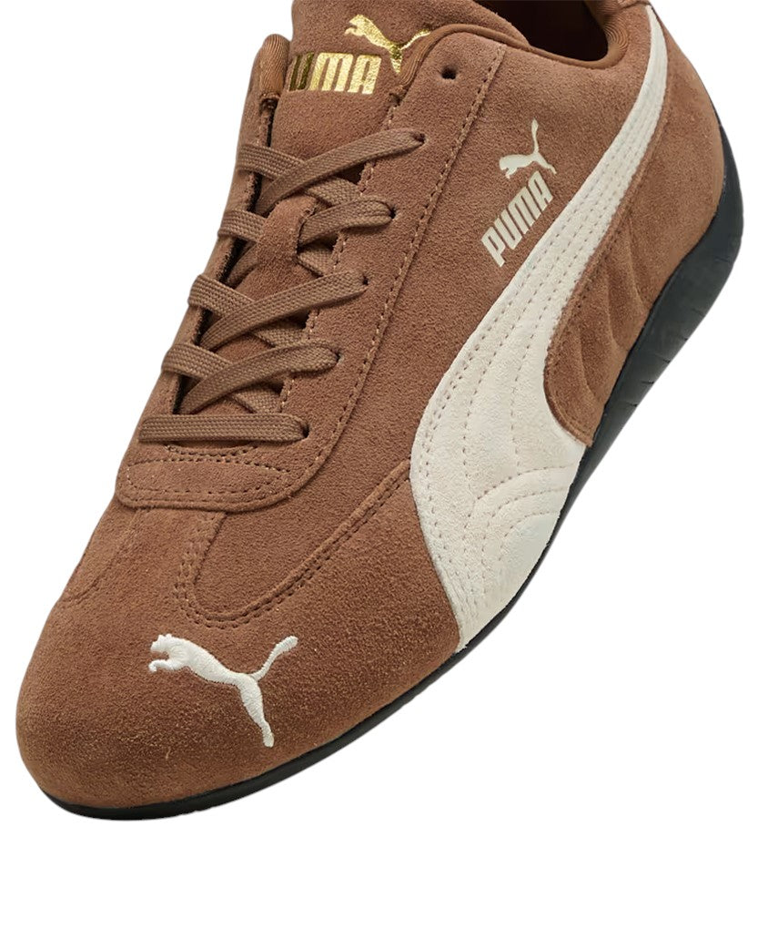Speedcat OG в коричневому кольорі, легендарна класика від PUMA, увібрала в себе суть гоночної спадщини, поєднуючи в собі стиль і продуктивність. Натхненні стрімким світом автоспорту, ці кросівки мають витончений силует та динамічний дизайн, що робить їх вічним фаворитом. Випущені на початку 2000-х років, Speedcat OG стали символом швидкості та спритності, їх носять як чемпіони з автоспорту, так і ентузіасти вуличного одягу. Його незмінна привабливість закріпила за ним місце в багатій історії PUMA. Модель Speedcat OG в коричневому кольорі демонструє однотонний замшевий верх, який випромінює вишуканість. Тонкий контраст забезпечується вигнутою наліпкою PUMA та брендуванням із золотої фольги, що додає дизайну особливий штрих. Аеродинамічний силует завершується закругленим носком і знаковим логотипом PUMA, що надає елегантності та витонченості. У цьому перевиданні бездоганно поєднується класичний стиль із сучасною вишуканістю, що робить цю модель обов'язковою для вибагливого шанувальника кросівок.