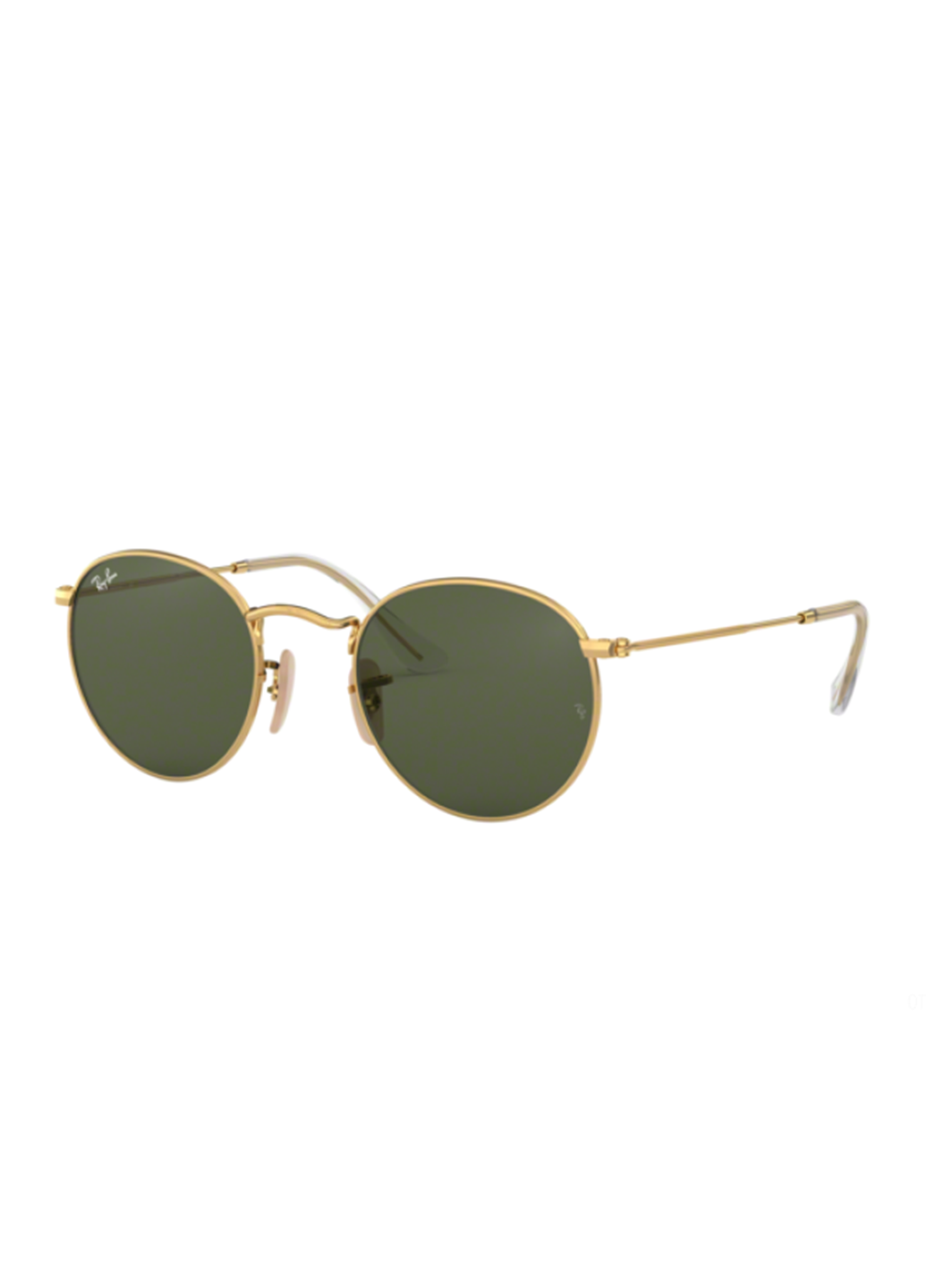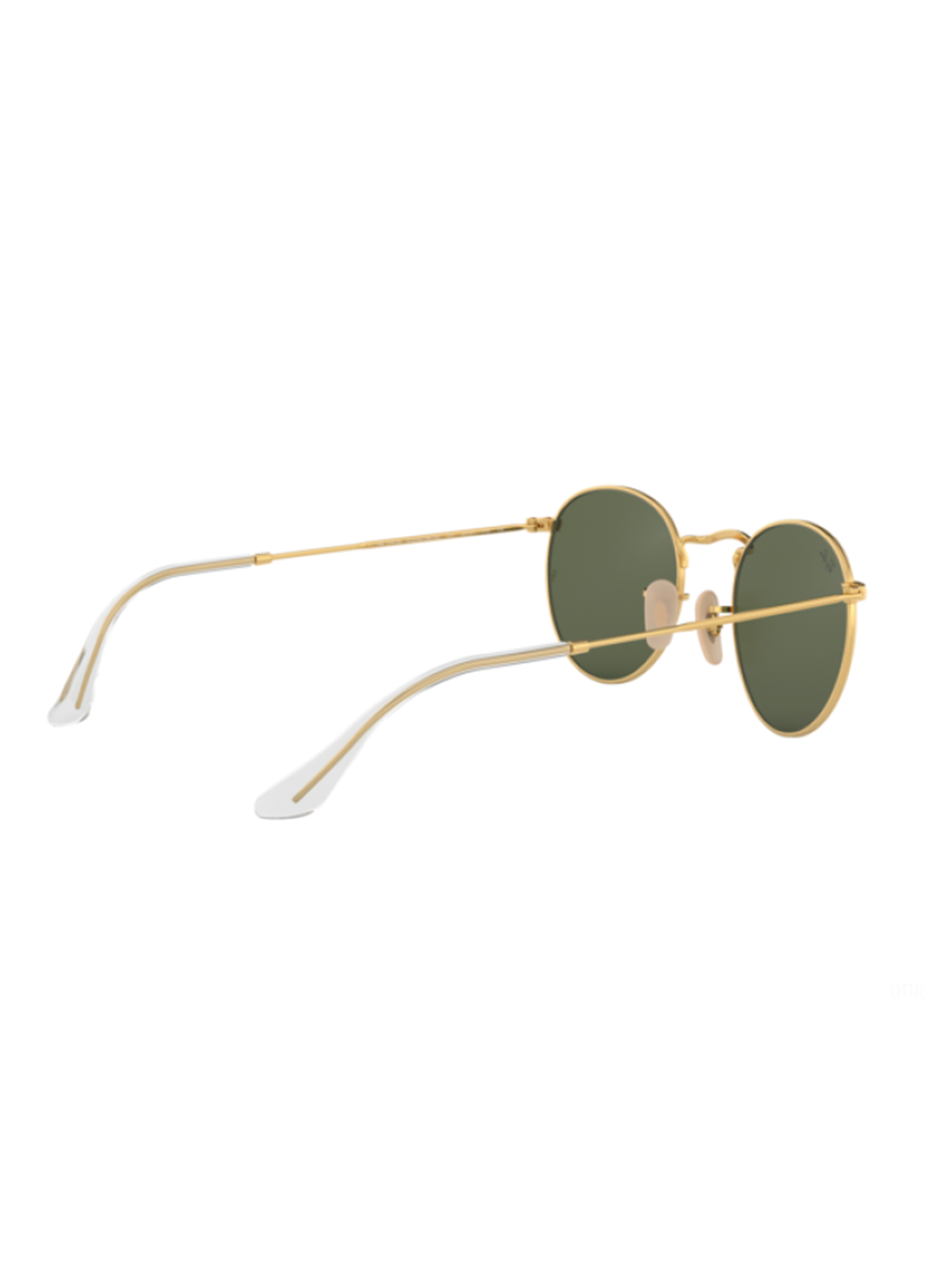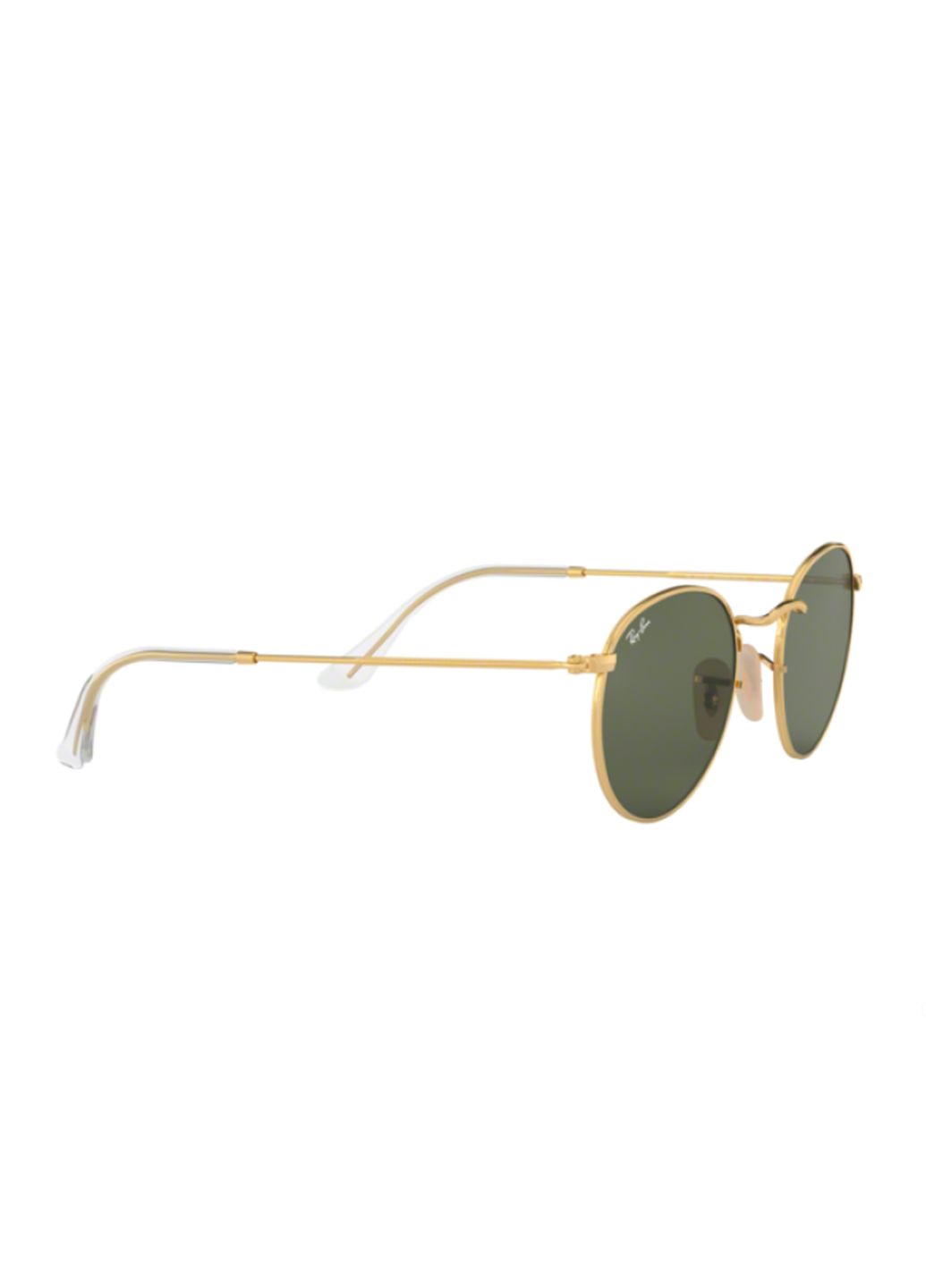 Сонцезахисні окуляри RB3447 у круглій металевій оправі від Ray Ban (Рей Бан). Прямі дужки з гостро вигнутими кінцями. Колір: gold-tone. Додається захисний чохол.