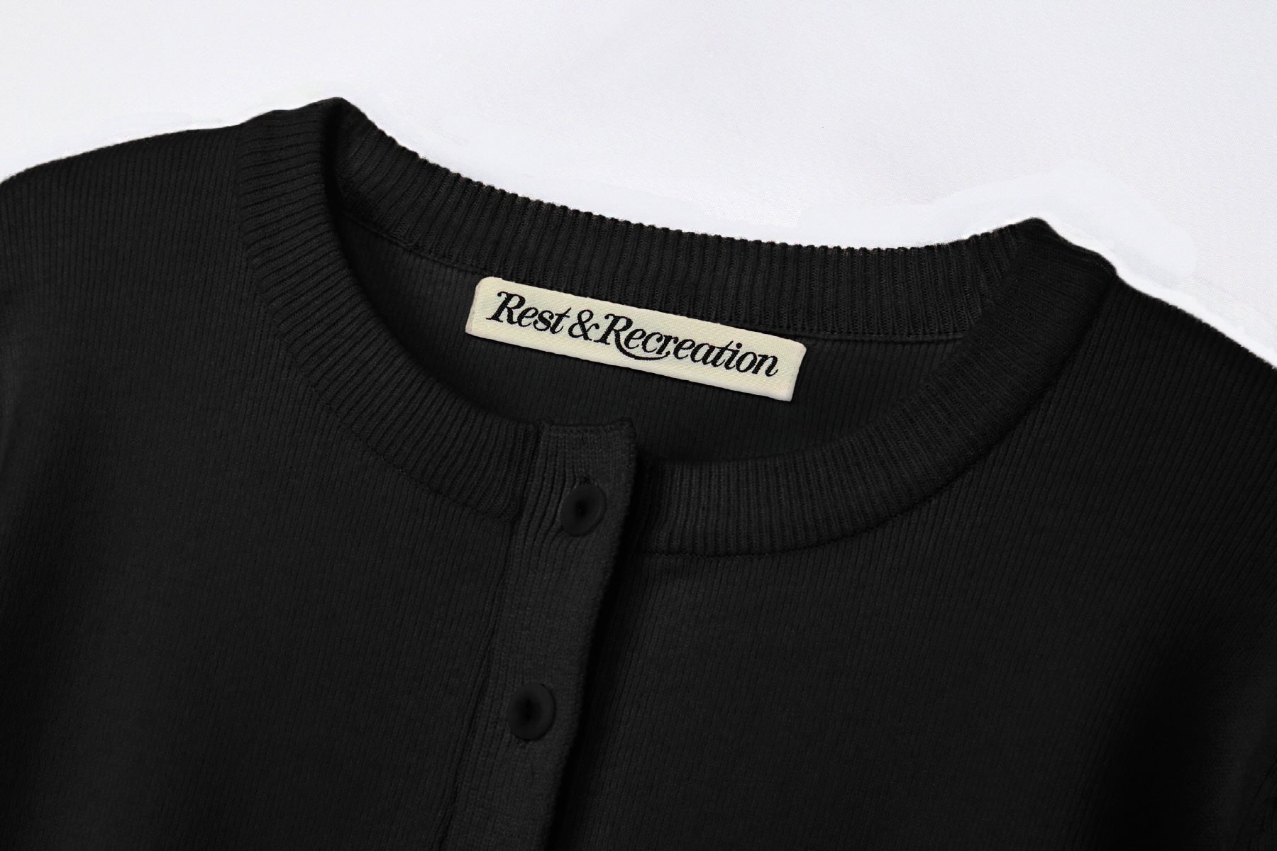 Укорочений трикотажний кардиган Rest&Recreation RR такий стильний і практичний! Поєднання бавовни, акрилу та поліестеру забезпечує не лише комфорт, але й довговічність. Укорочений крій, ребриста обробка та застібка на ґудзики роблять його універсальною річчю, яку можна носити окремо або багатошарово.