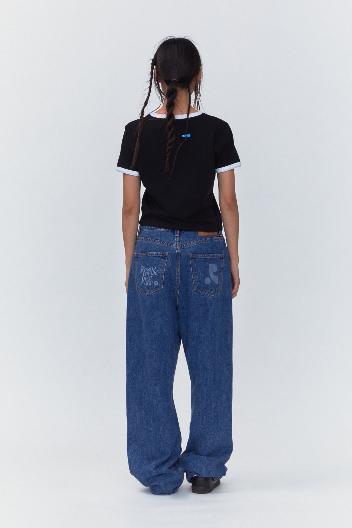 Логотип та символи RR, надруковані на обох задніх кишенях, підкреслюють дизайн та додають унікального характеру. Ці джинси ідеально підходять для створення повсякденного образу або поєднання з більш елегантними речами.