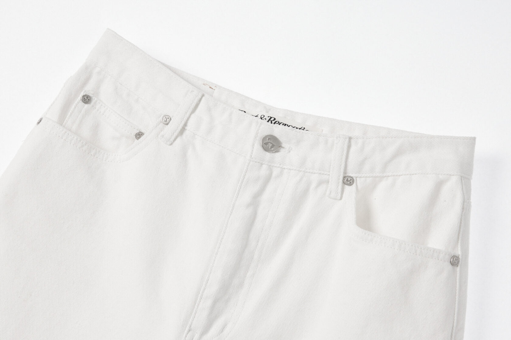 Логотип та символи RR, надруковані на обох задніх кишенях, підкреслюють дизайн та додають унікального характеру. Ці джинси ідеально підходять для створення повсякденного образу або поєднання з більш елегантними речами.