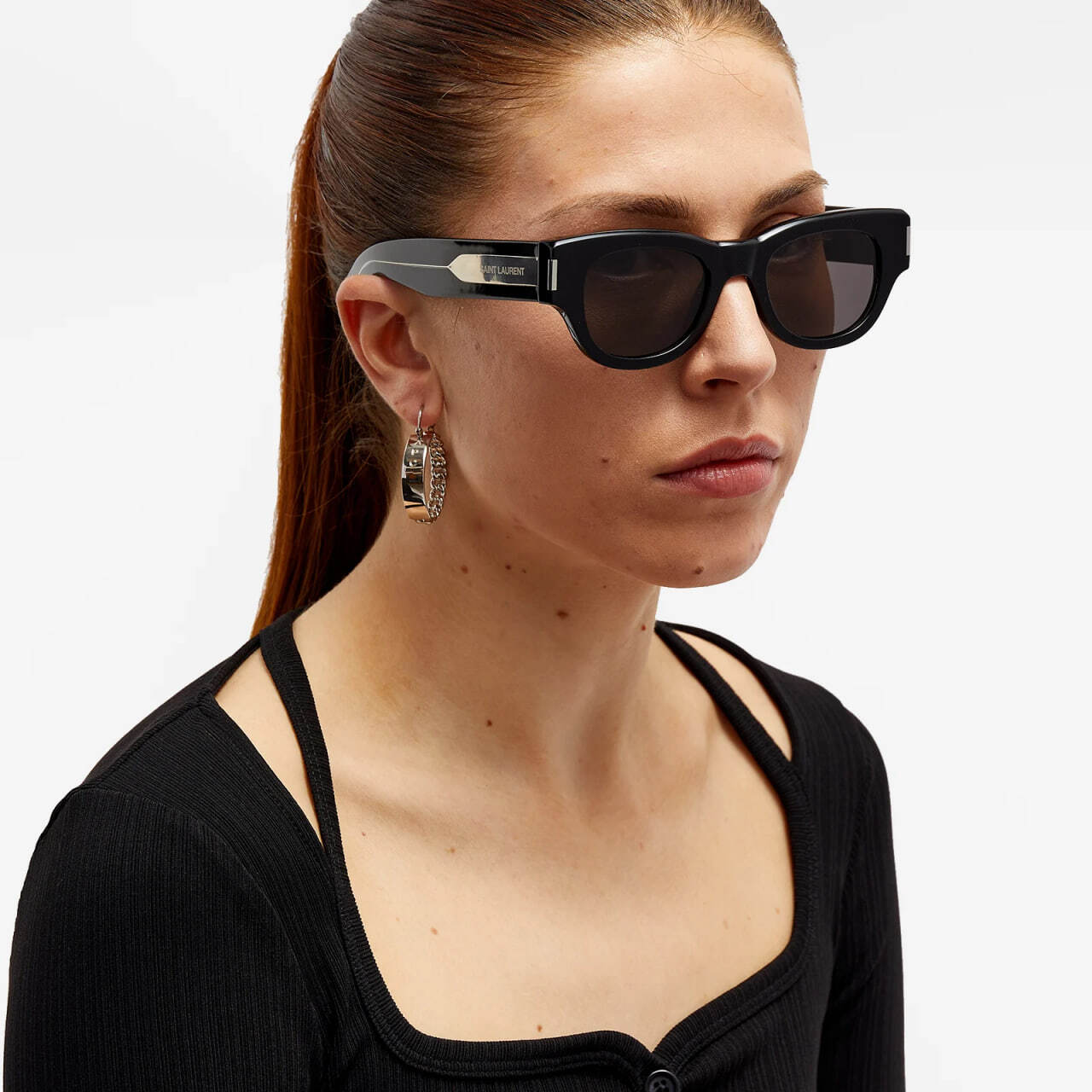 Сонцезахисні окуляри Saint Laurent Shiny Solid Black SL 573. Класична лінія з блискучою чорною оправою та чорними лінзами.