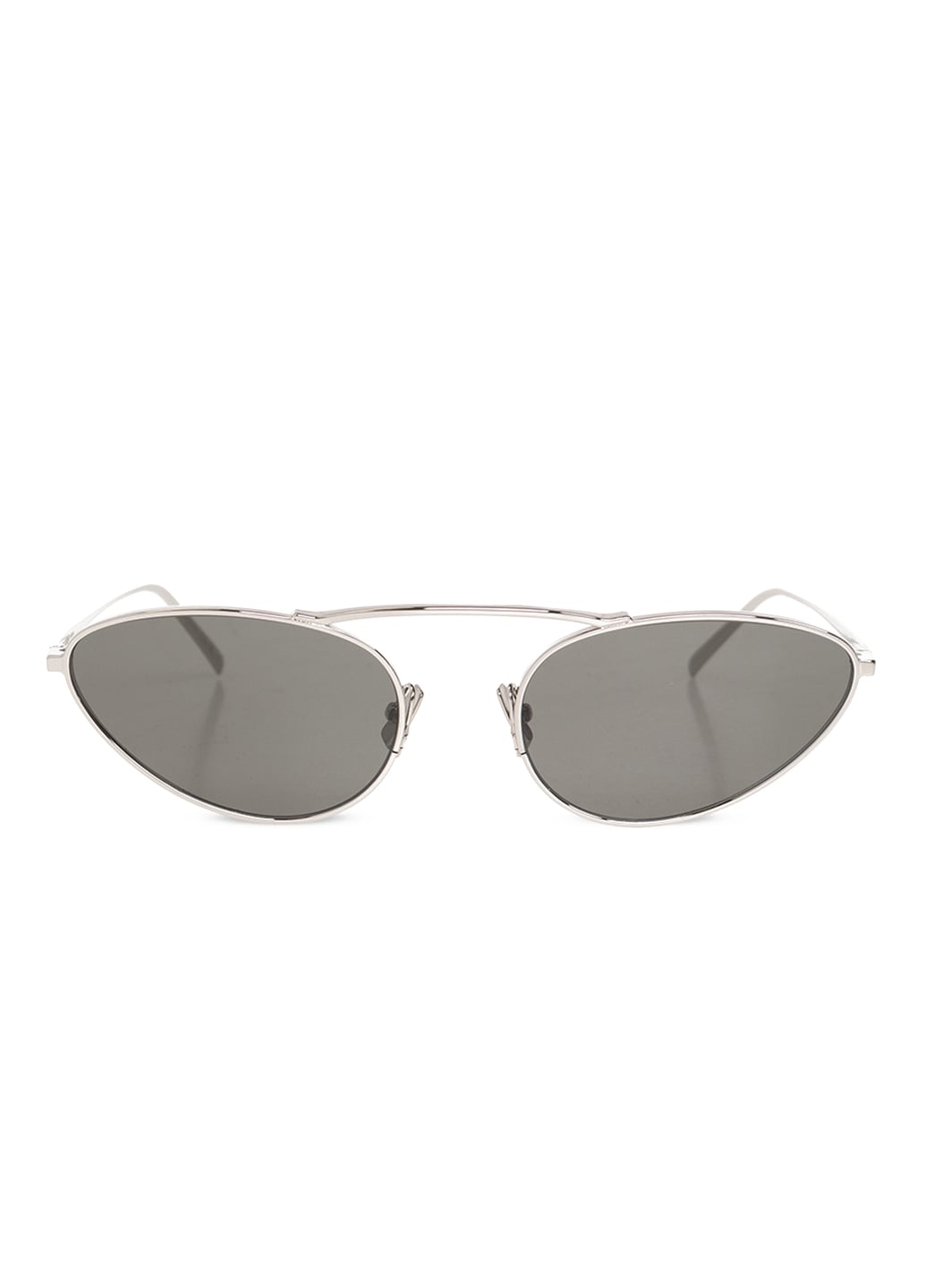 Сонцезахисні окуляри з колекції Saint Laurent New Wave - модель Saint Laurent Silver SL 538 зі сріблястою оправою та чорними лінзами.