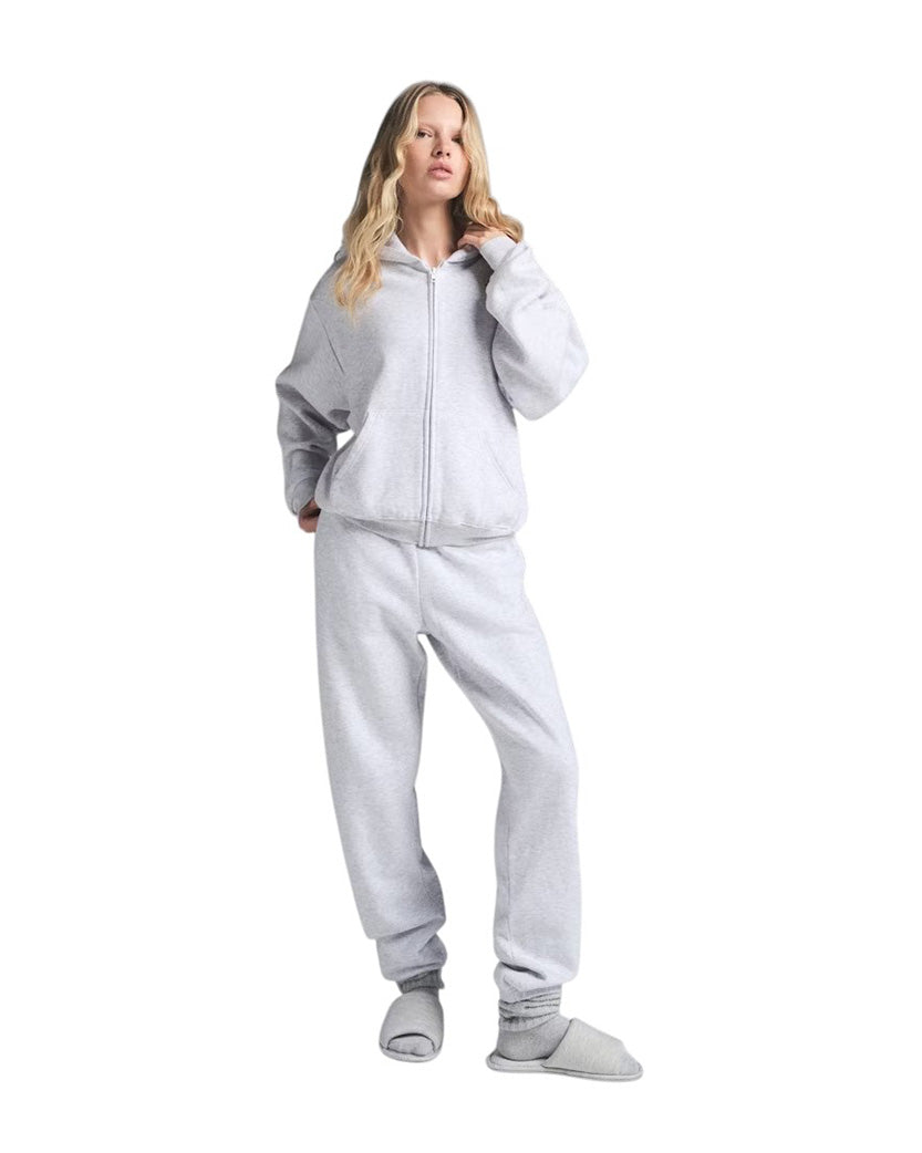Skims Cotton Fleece Classic Zip Up Hoodie Light Heather Grey