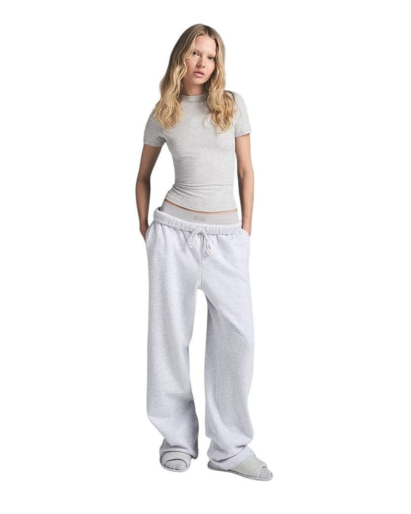 Skims Cotton Fleece Straight Leg Pant Light Heather Grey