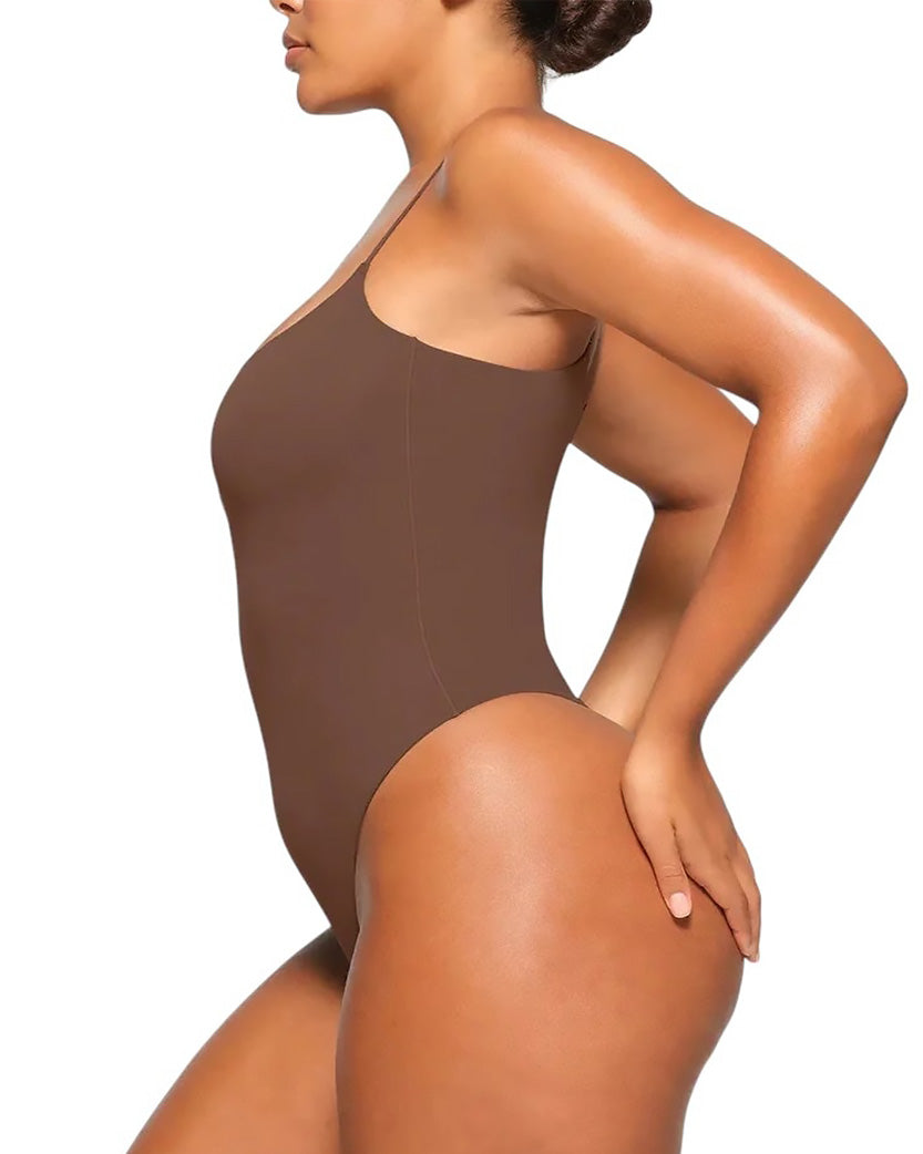 Skims Fits Everybody Cami Bodysuit — це базовий боді з тонкими бретелями, який ідеально повторює контури тіла завдяки надм’якому, еластичному матеріалу з культової лінійки Fits Everybody. Модель має глибокий виріз спереду та облягаючий силует, що забезпечує гладку посадку під будь-який одяг. Легка тканина добре дихає, не просвічується та дарує відчуття другої шкіри, роблячи цей боді ідеальним варіантом як для повсякденного носіння, так і як нижній шар під інші речі.