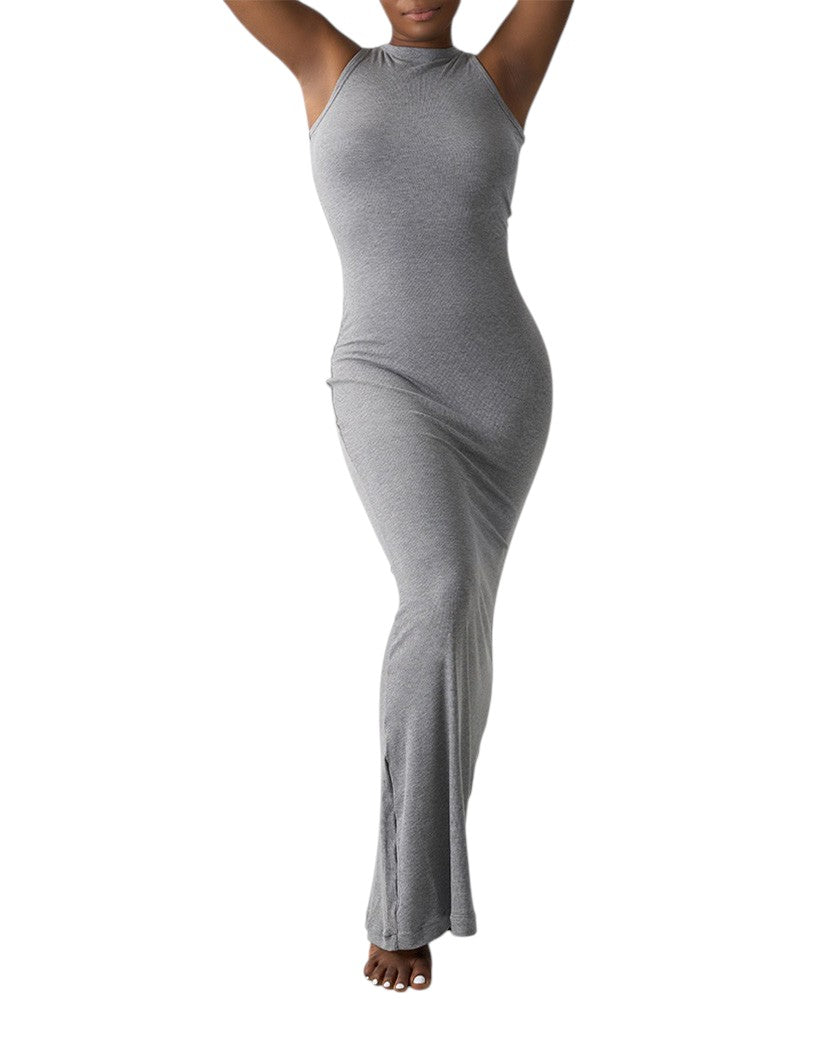 Skims Smooth Layers Long Boat Neck Dress Heather Grey