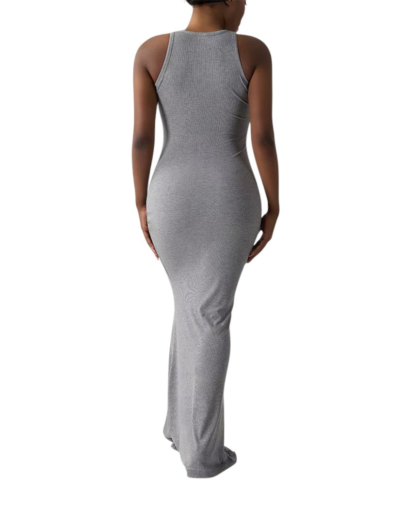 Ця довга сукня з вирізом-човником і приталеним силуетом втілює мінімалістичну елегантність і сучасну жіночність. Виготовлена з нового ультрагладкого модального полотна, вона м’яко облягає тіло, підкреслюючи форми, а вільний крій по подолу додає рухливості та легкості. Ідеальна як для денних образів, так і для вечірніх виходів, ця модель поєднує комфорт і витонченість в одній універсальній сукні.
