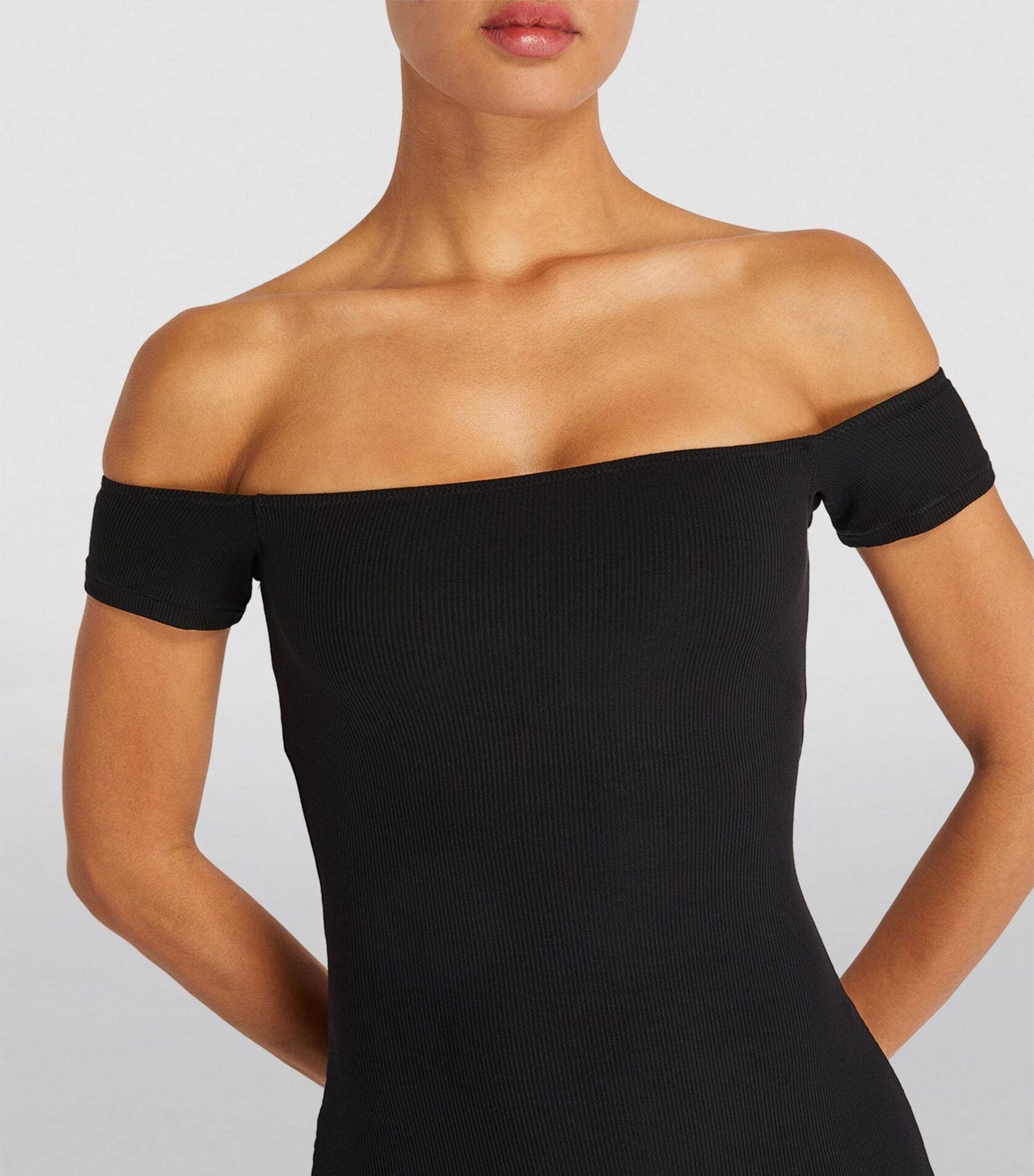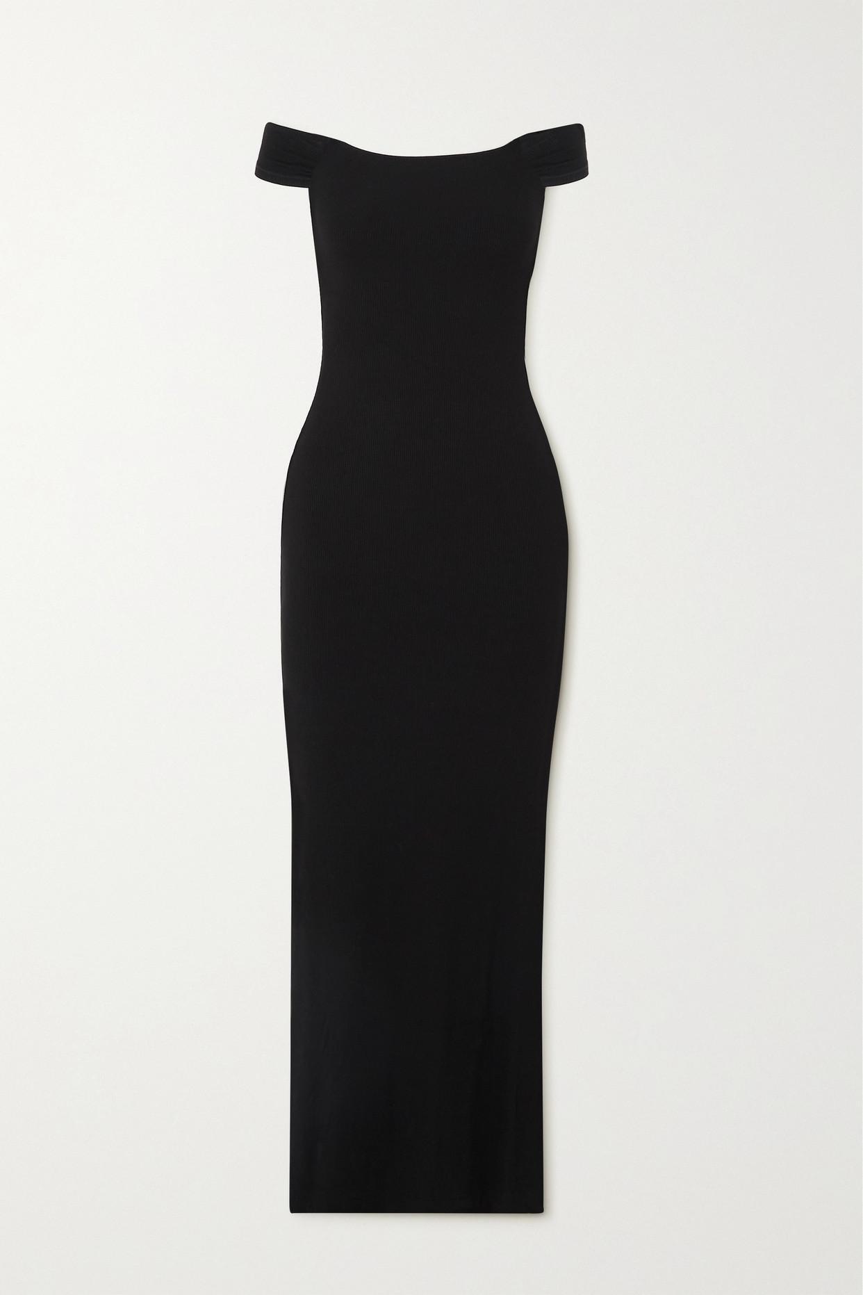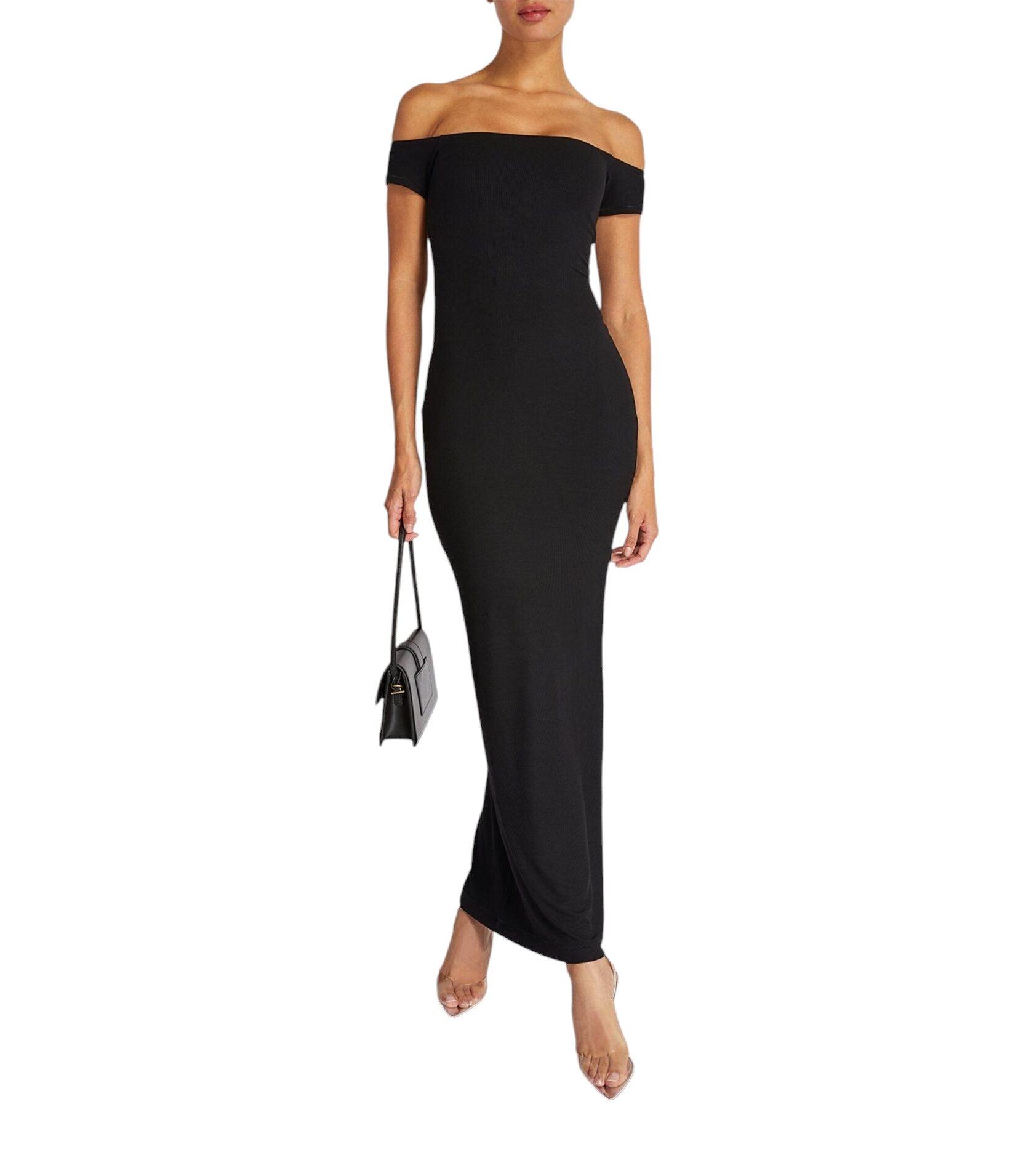 Skims Soft Lounge Off The Shoulder Ribbed Dress Onyx
