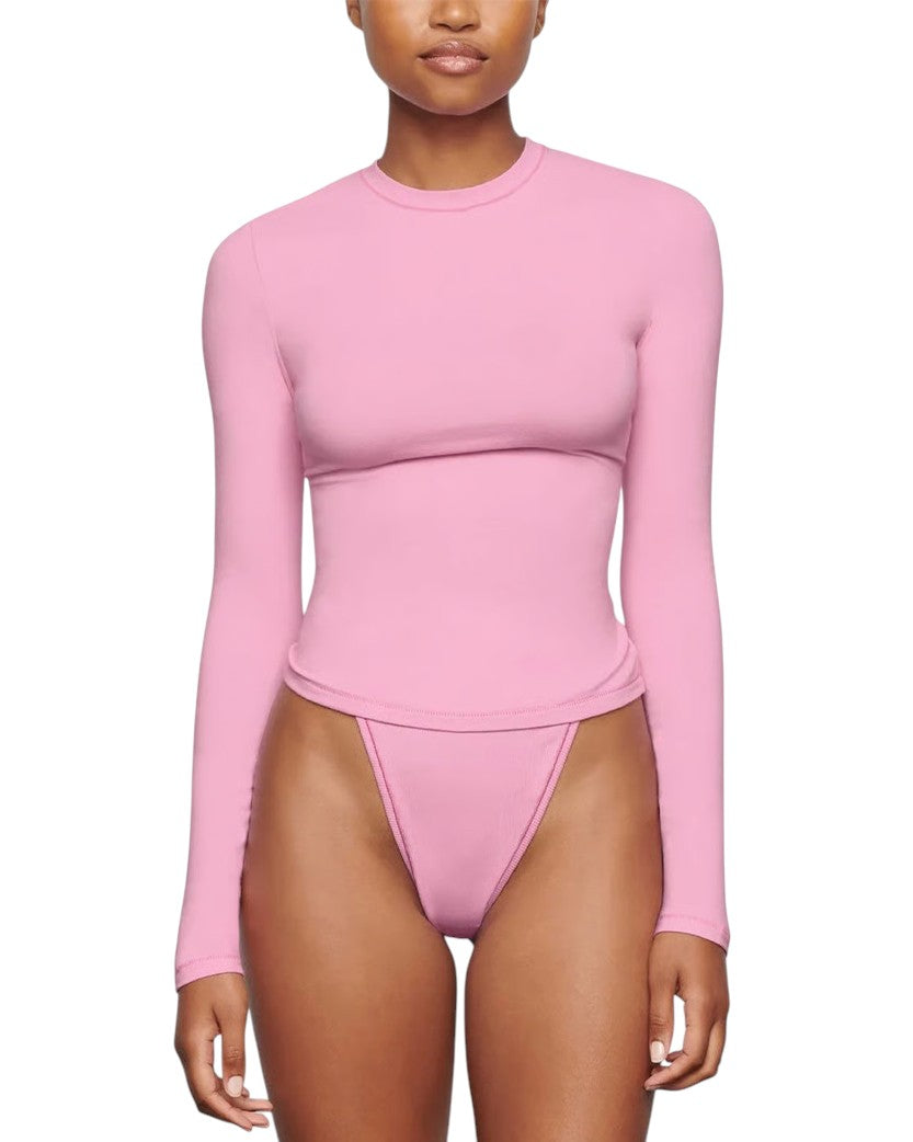 Skims Soft Smoothing Seamless Long Sleeve T-Shirt Bubble Gum