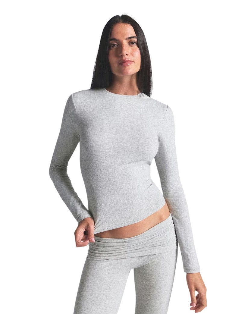 Skims Soft Smoothing Seamless Long Sleeve T-Shirt Light Heather Grey