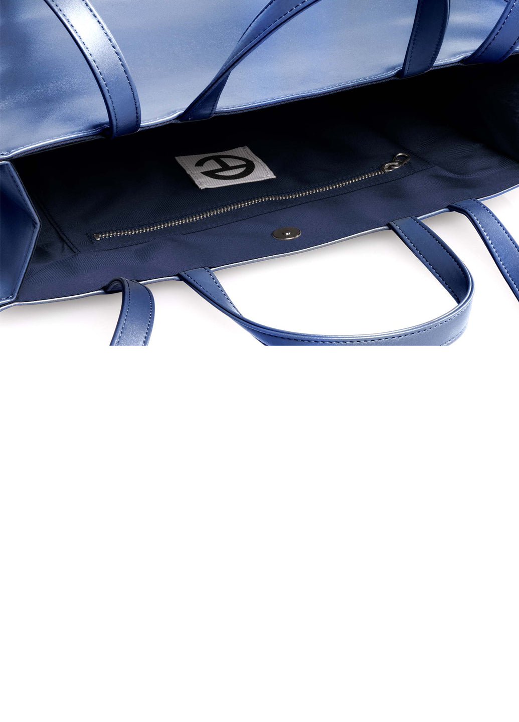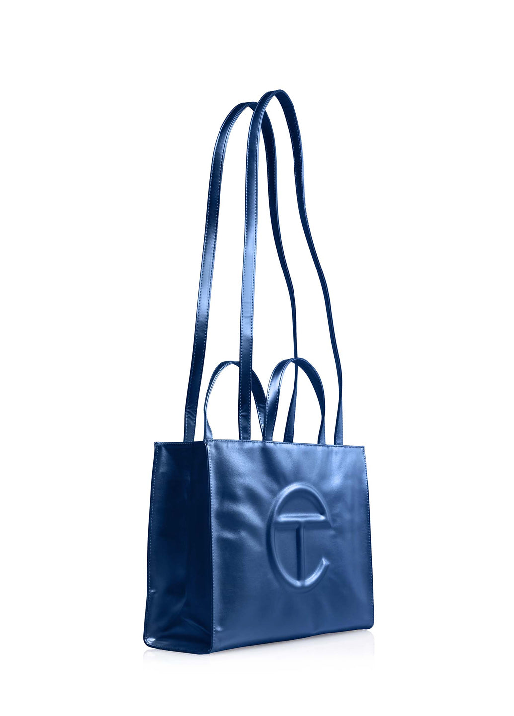 Культова сумка для покупок - практична сумка на кожен день. Вона має подвійні ремінці (ручки та ремінці через плече), тиснений логотип і магнітну застібку. Виготовлена зі штучної шкіри з підкладкою з твілу, сумка поставляється в мішечку зі шнурком з 100% бавовни із трафаретним логотипом.