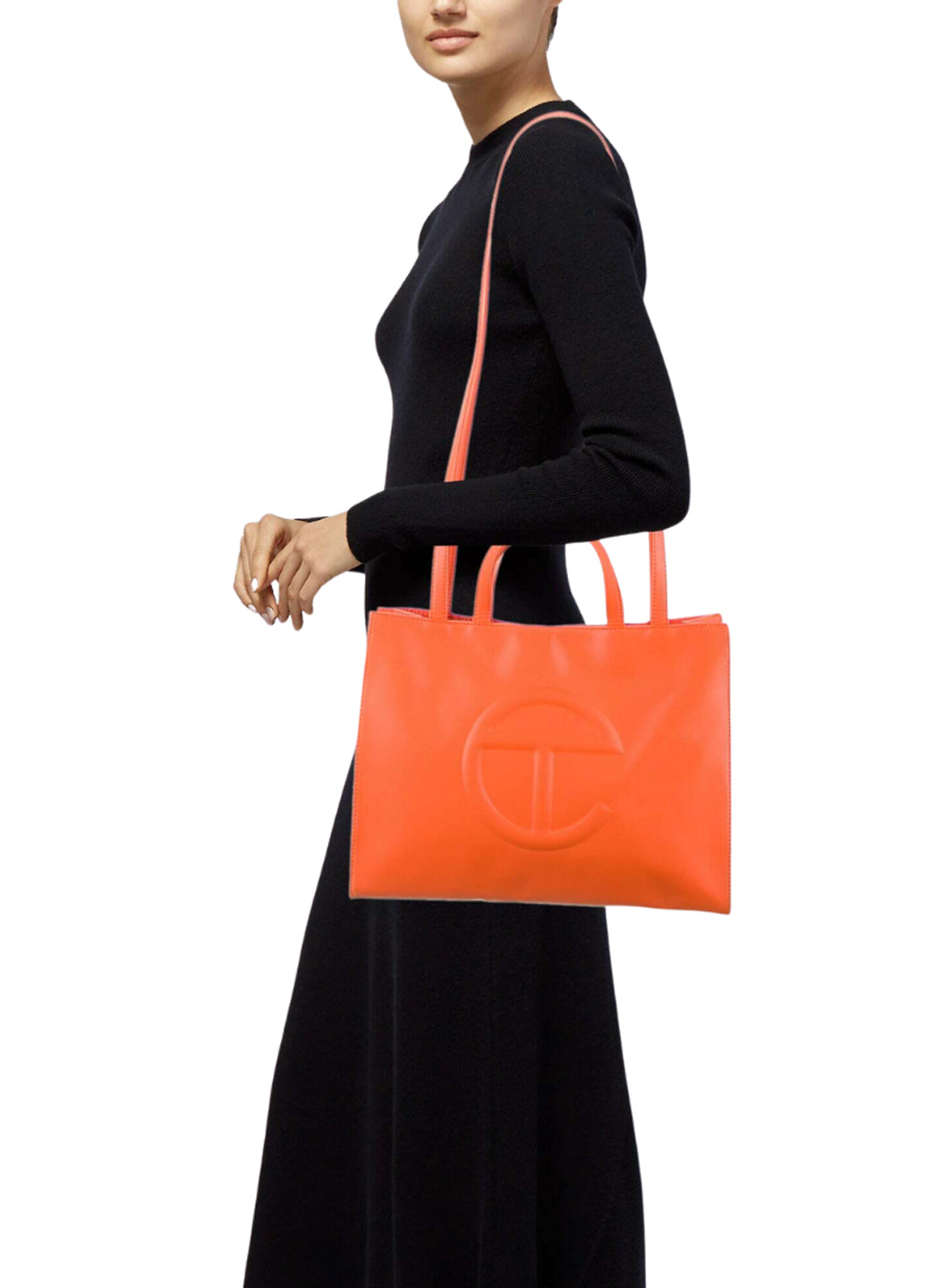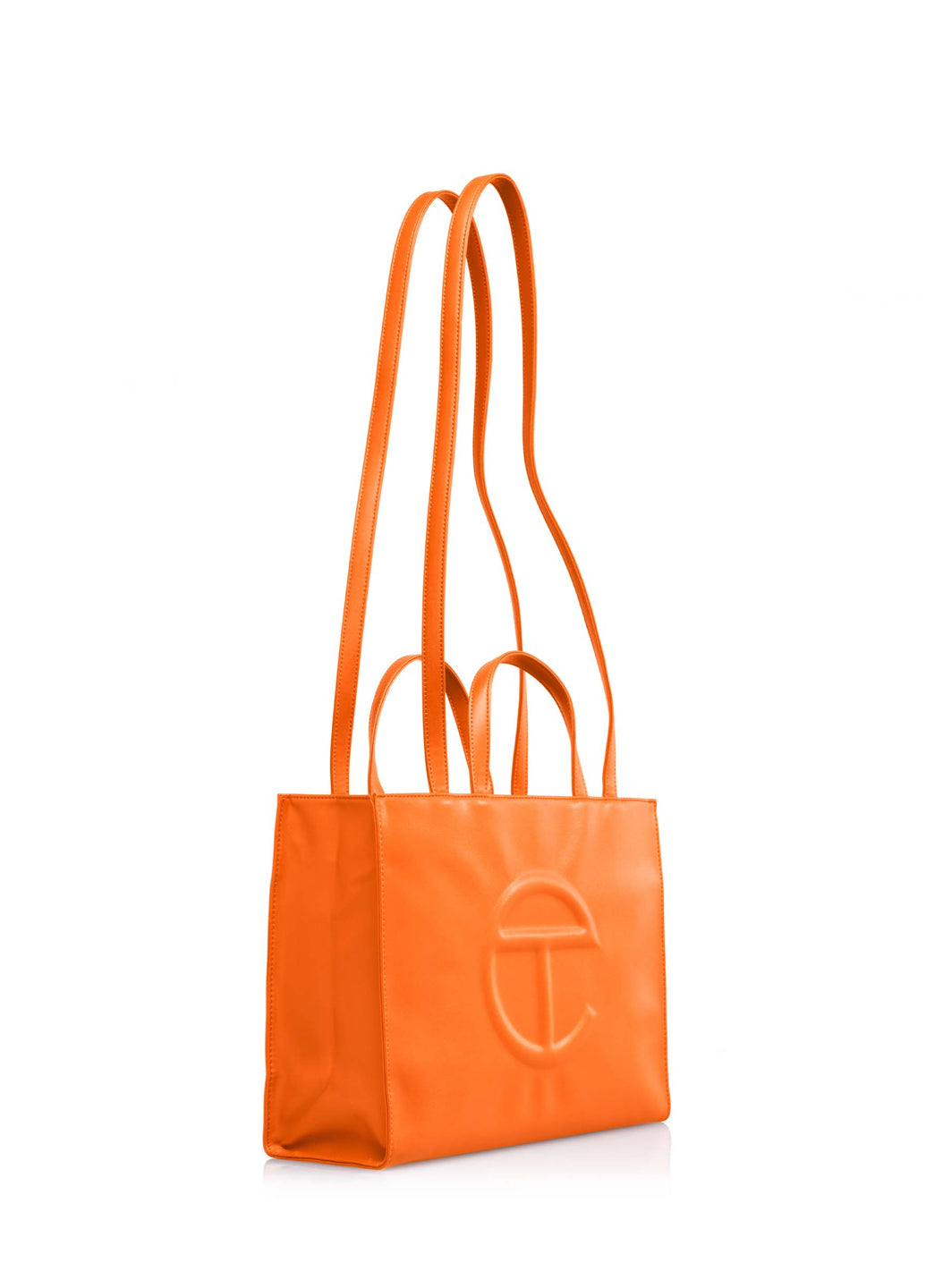 Культова сумка для покупок - практична сумка на кожен день. Вона має подвійні ремінці (ручки та ремінці через плече), тиснений логотип і магнітну застібку. Виготовлена зі штучної шкіри з підкладкою з твілу, сумка поставляється в мішечку зі шнурком з 100% бавовни із трафаретним логотипом.