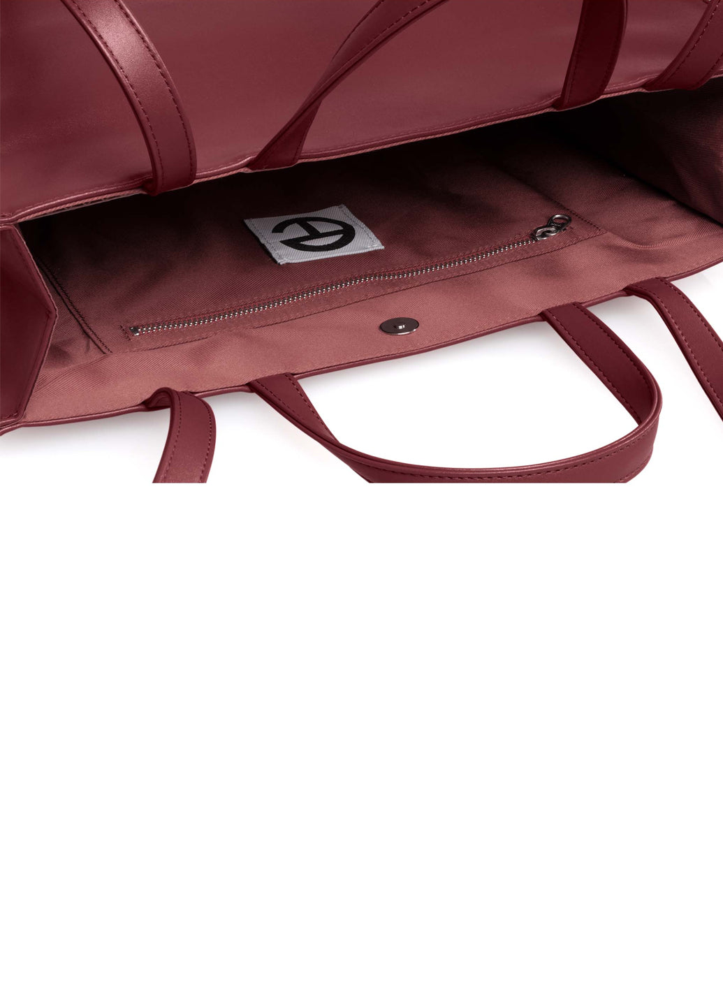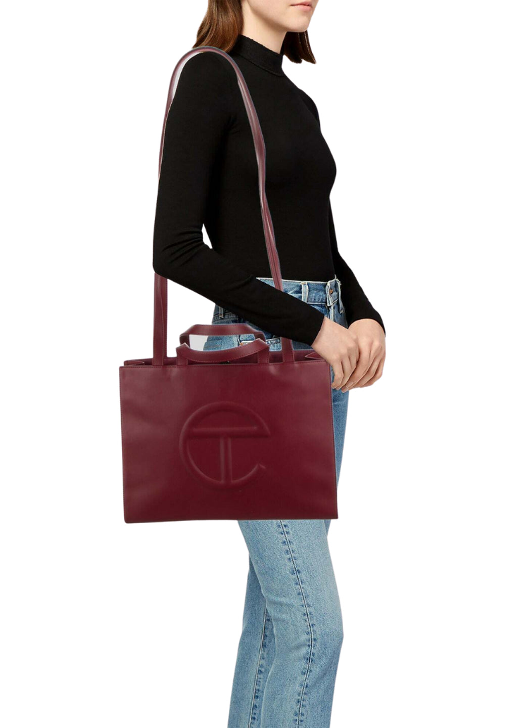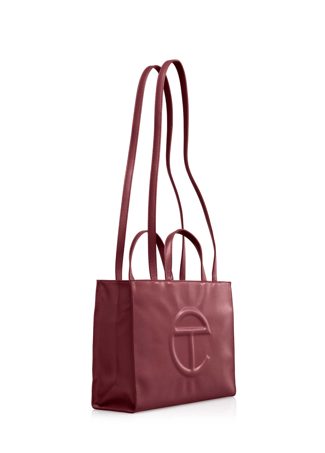 Культова сумка для покупок - практична сумка на кожен день. Вона має подвійні ремінці (ручки та ремінці через плече), тиснений логотип і магнітну застібку. Виготовлена зі штучної шкіри з підкладкою з твілу, сумка поставляється в мішечку зі шнурком з 100% бавовни із трафаретним логотипом.